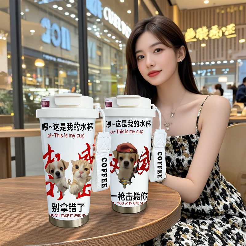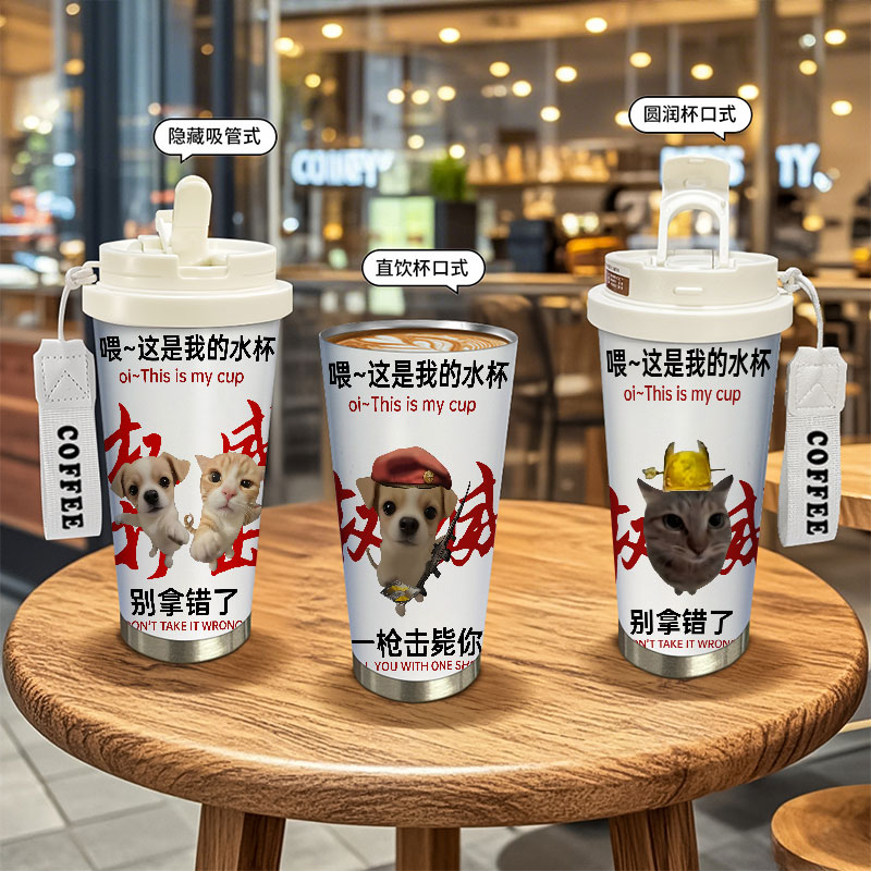 权威小猫周边保温杯搞怪学生上学专用大容量儿童不锈钢吸管水杯子