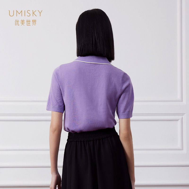 SK3W3205 简约V领拼色上衣套头毛衫 umisky优美世界专柜同款 秋时尚