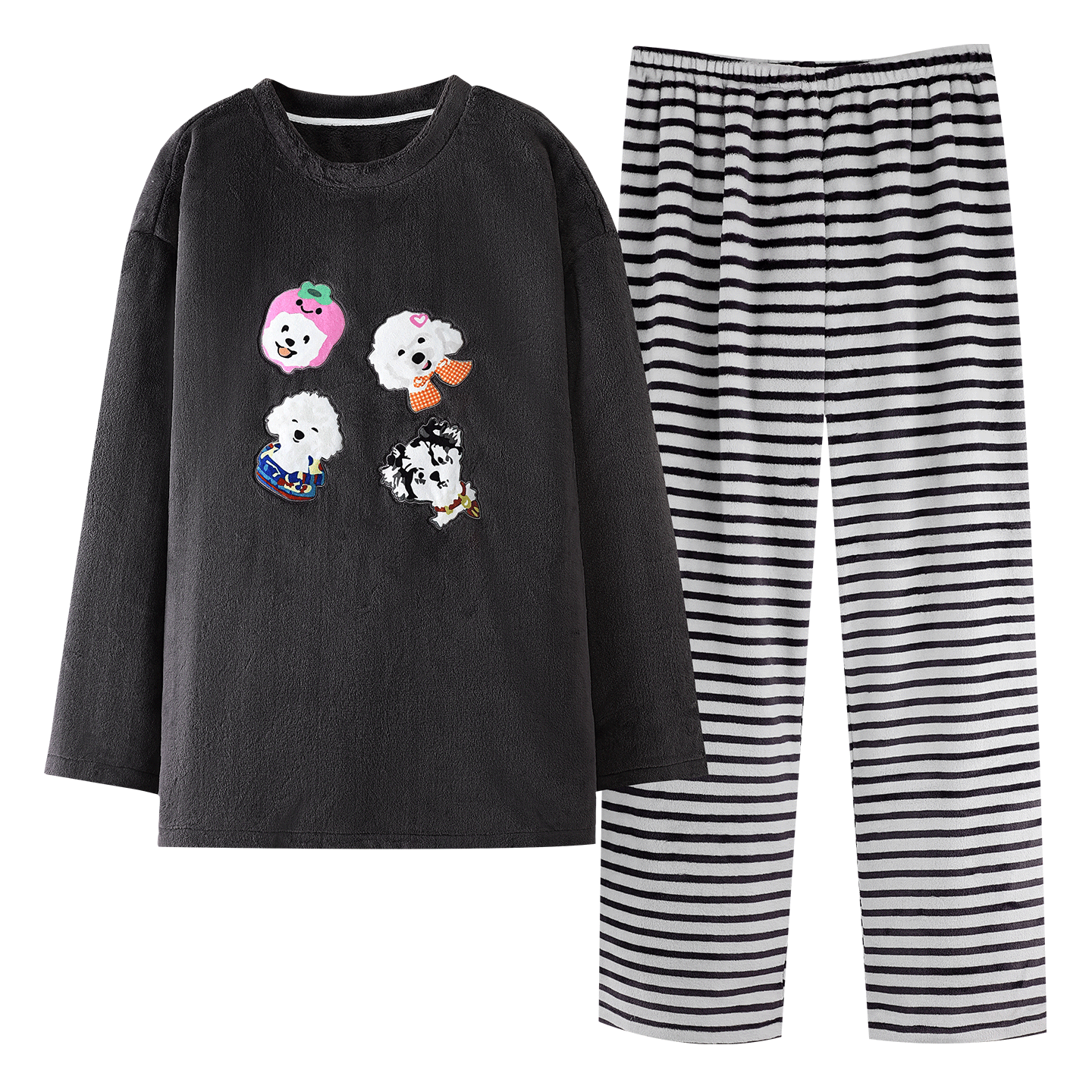 猫人暖绒女士睡衣2025秋冬新款 卡通甜美保暖可外穿家居服睡衣套装
