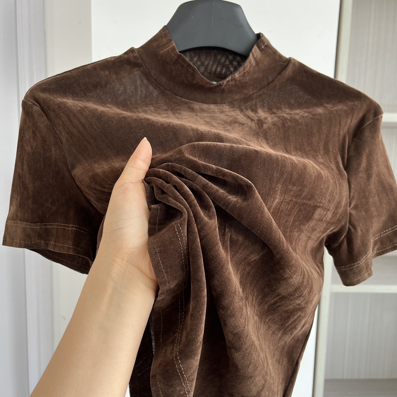 上衣 百搭打底衫 欧货潮牌丝绒短袖 半高领T恤女2025早秋高级感时尚