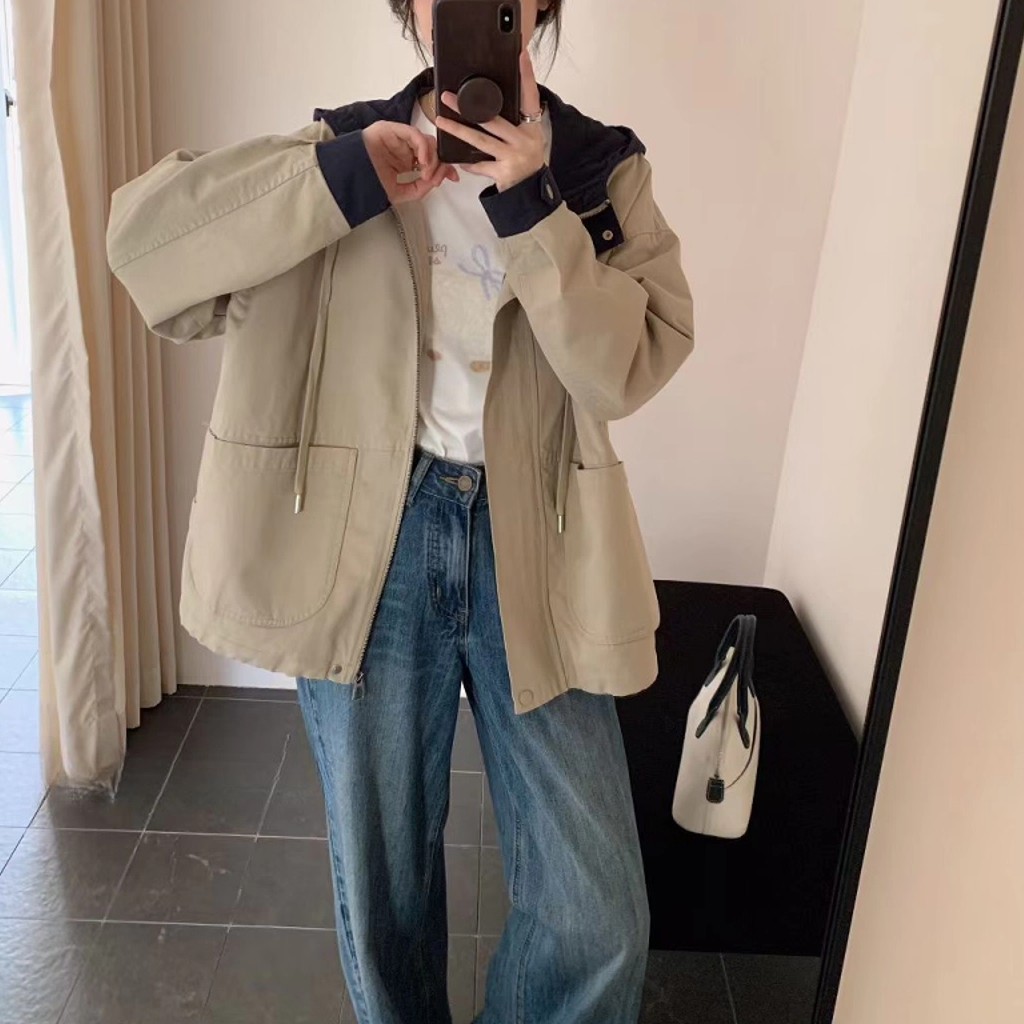 WANG游牧风卡其色连帽风衣外套女宽松中长款 LEDIM 明星同款