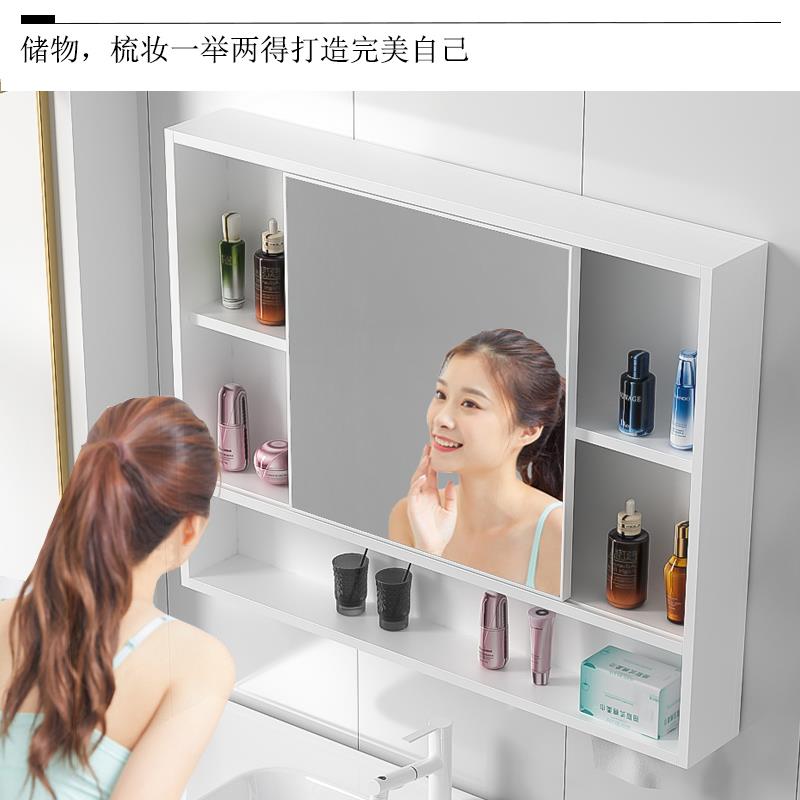 太空铝浴室智能镜柜推拉门挂墙式 单独收纳盒卫生间镜子多层储物