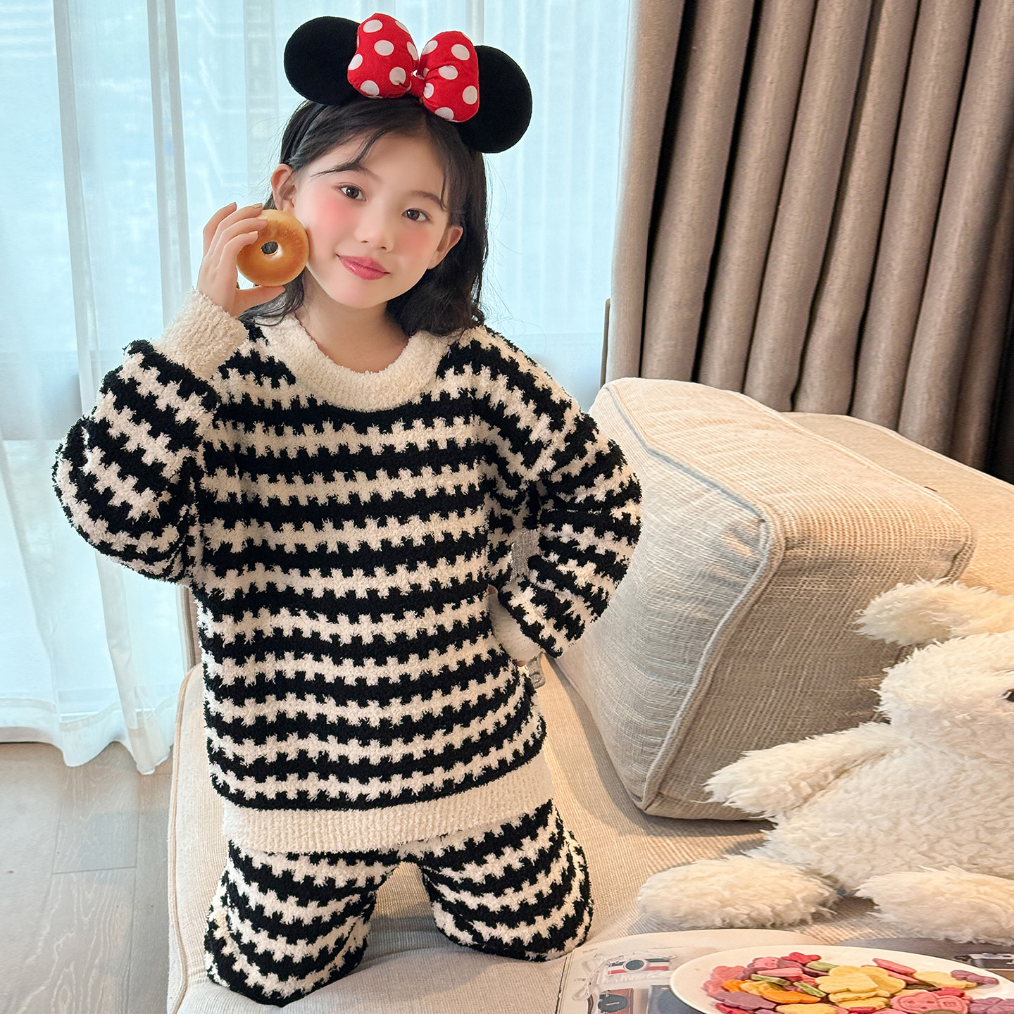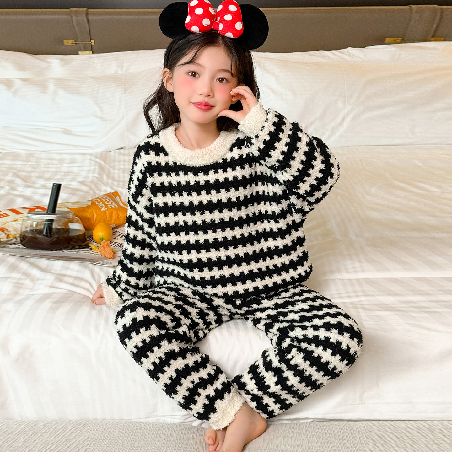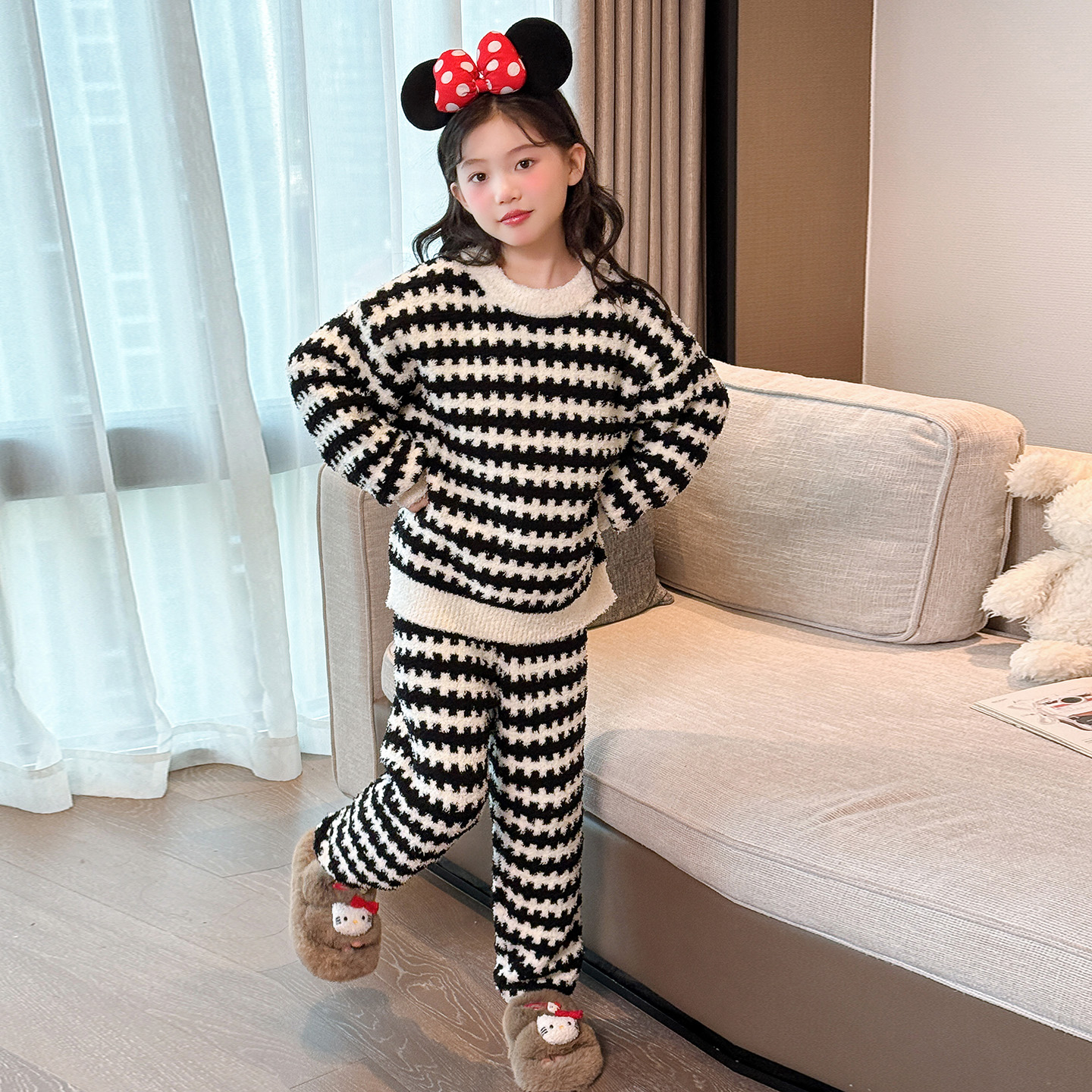 女童睡衣冬季 大童法兰绒衣服 加厚半边绒儿童家居服女孩珊瑚绒套装