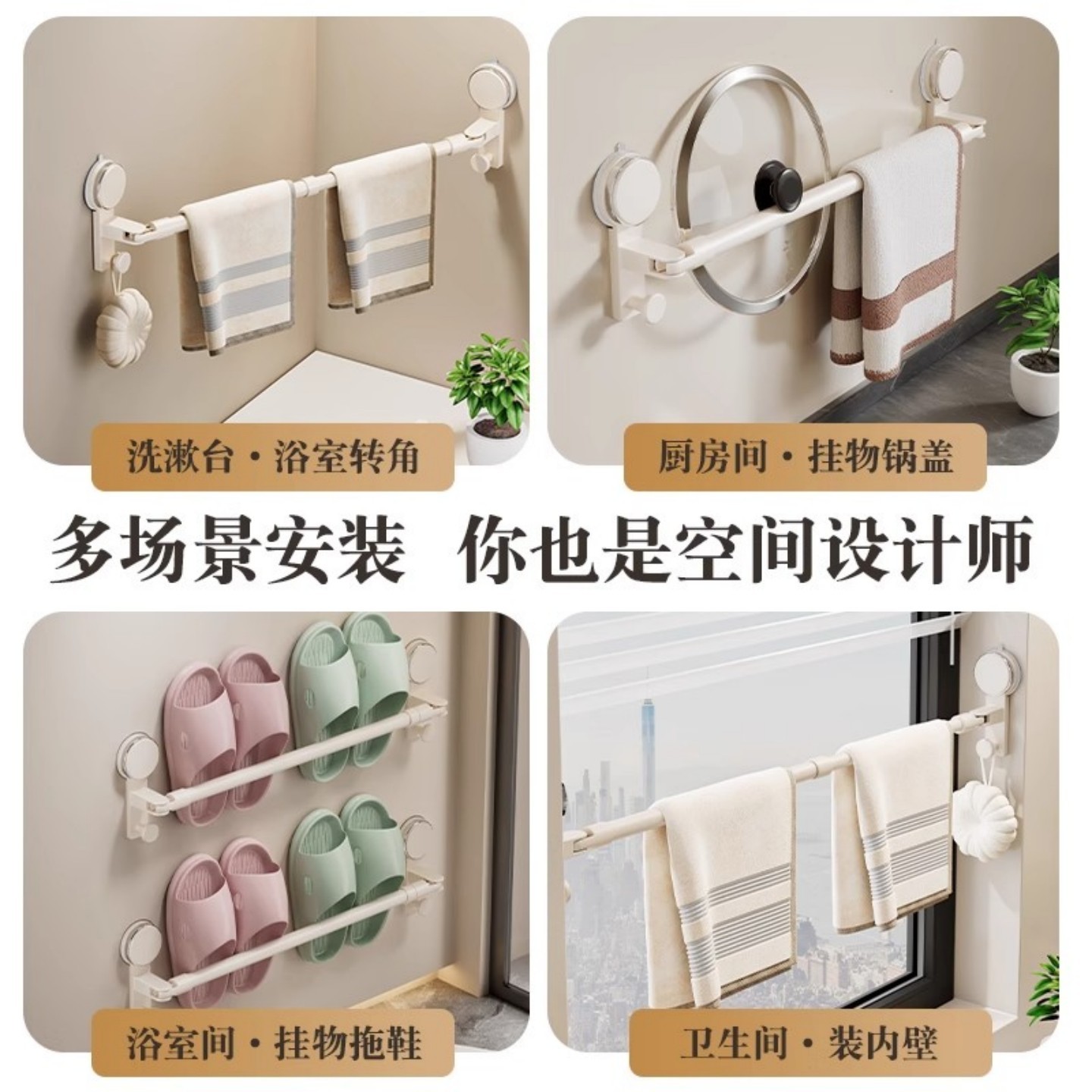 浴室吸盘拖鞋 子沥水架收纳神器 架壁挂伸缩毛巾杆免打孔卫生间鞋