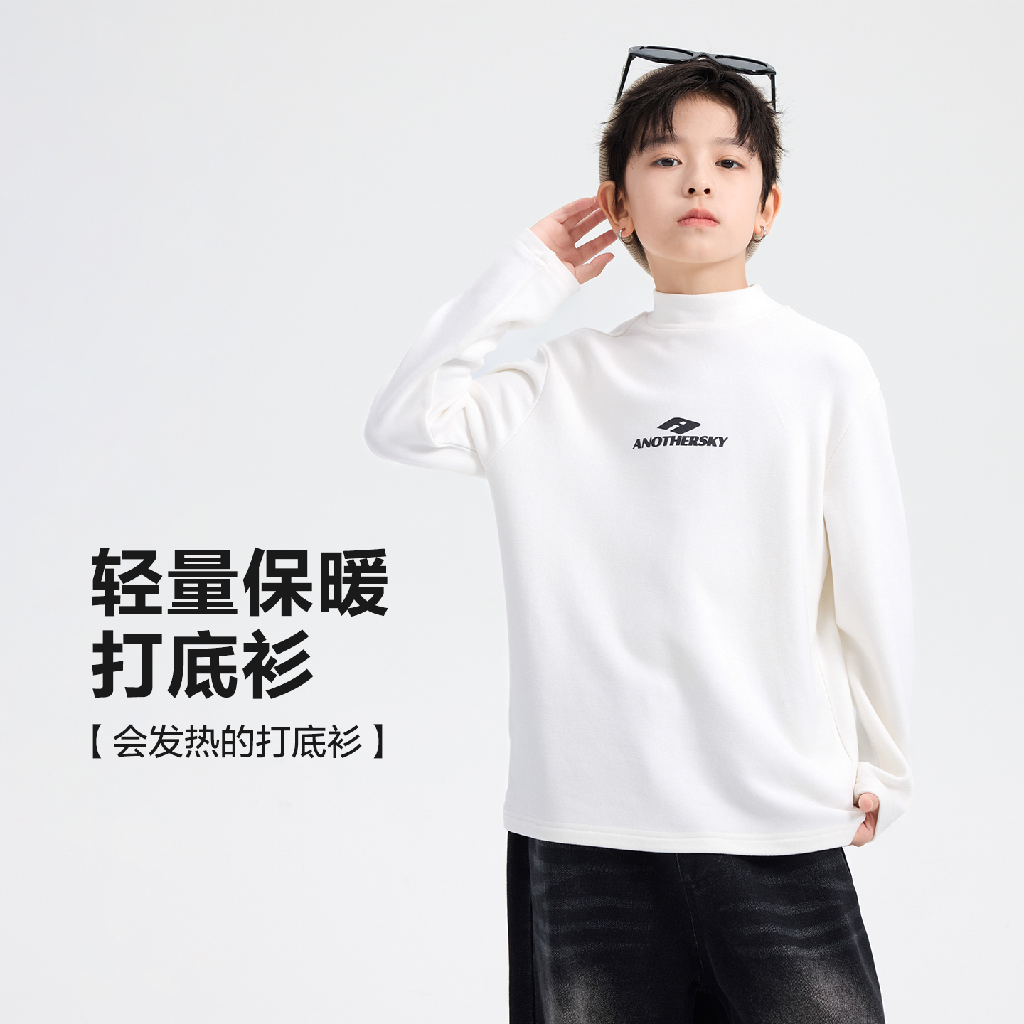 上衣 儿童加厚内搭长袖 男童秋冬韩范黑色半高领德绒打底衫 2025新款