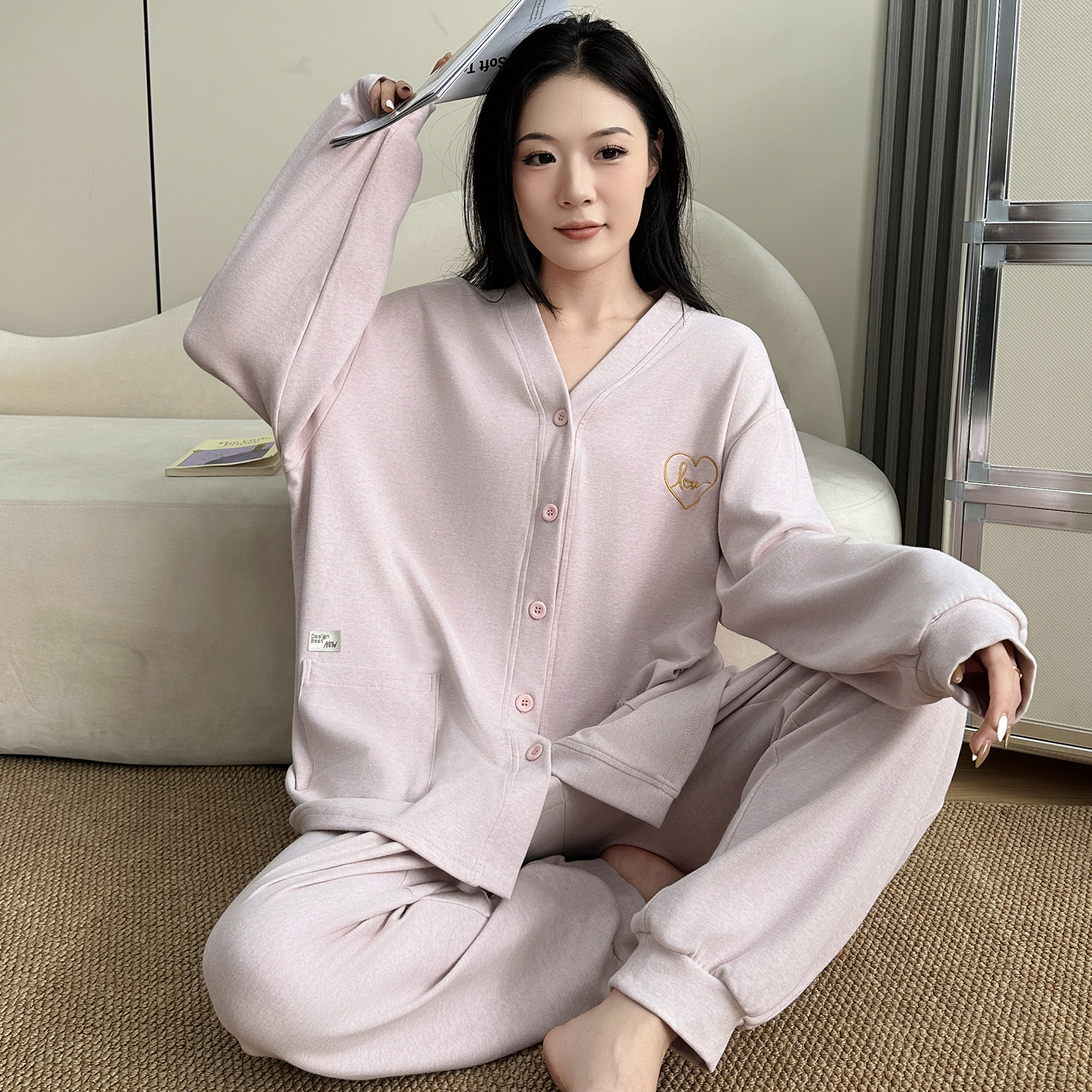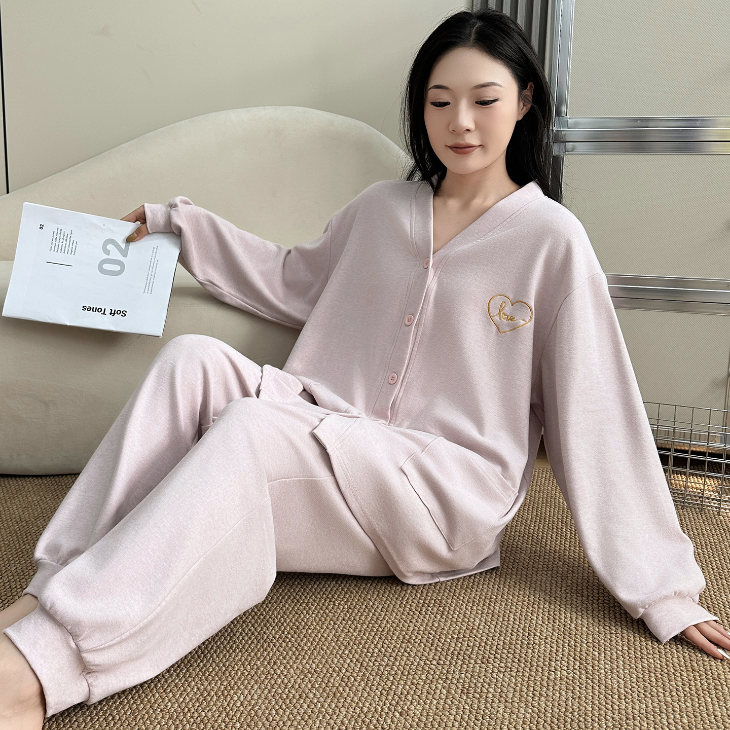 长袖 家居服套装 长裤 大码 可外穿 2025新款 猫人纯棉睡衣女士春秋季