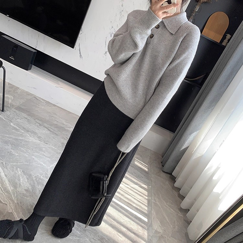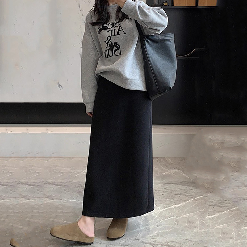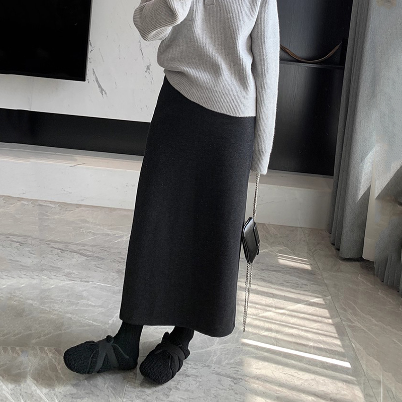灰色羊毛呢半身裙女秋冬季 长裙直筒气质显瘦针织a字开叉包臀裙子
