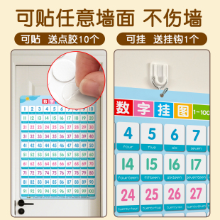 儿童认知1到100数字挂图墙贴学习教具幼儿园认识数宝宝启蒙百数表