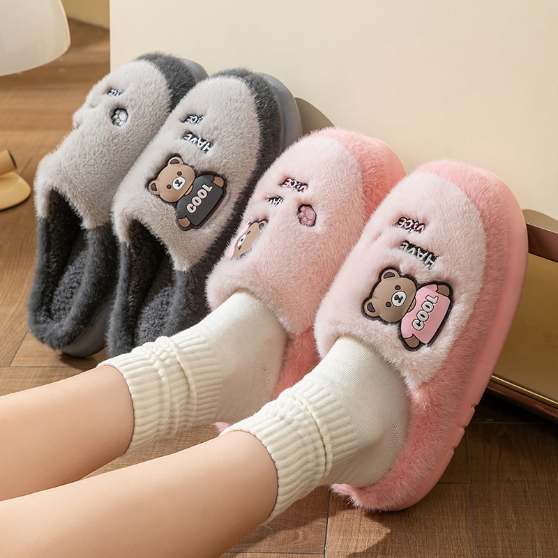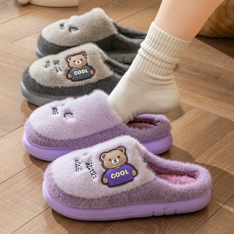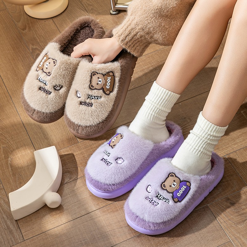 室内家居家防滑厚底踩屎感毛毛绒保暖情侣拖鞋 秋冬季 女 男士 棉拖鞋