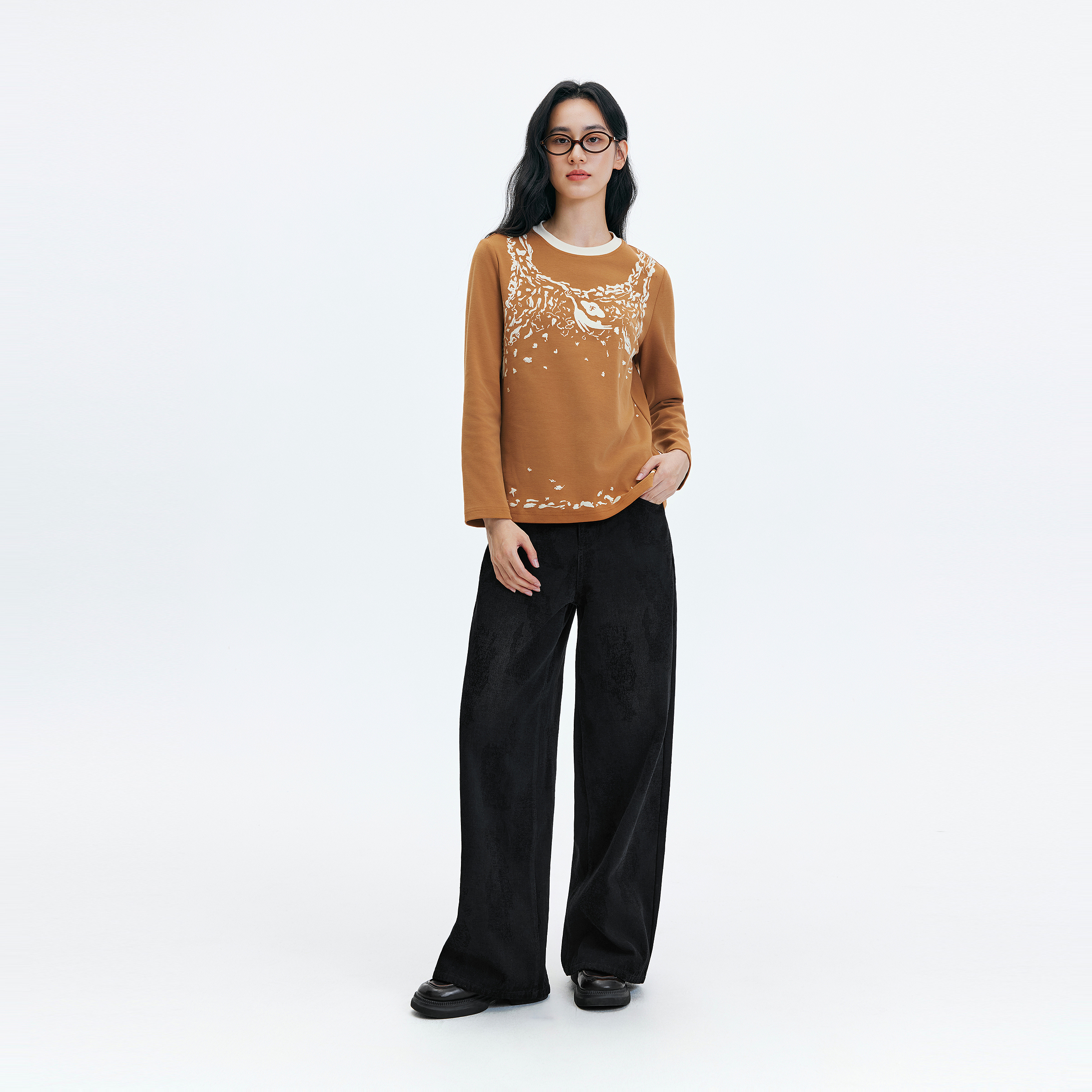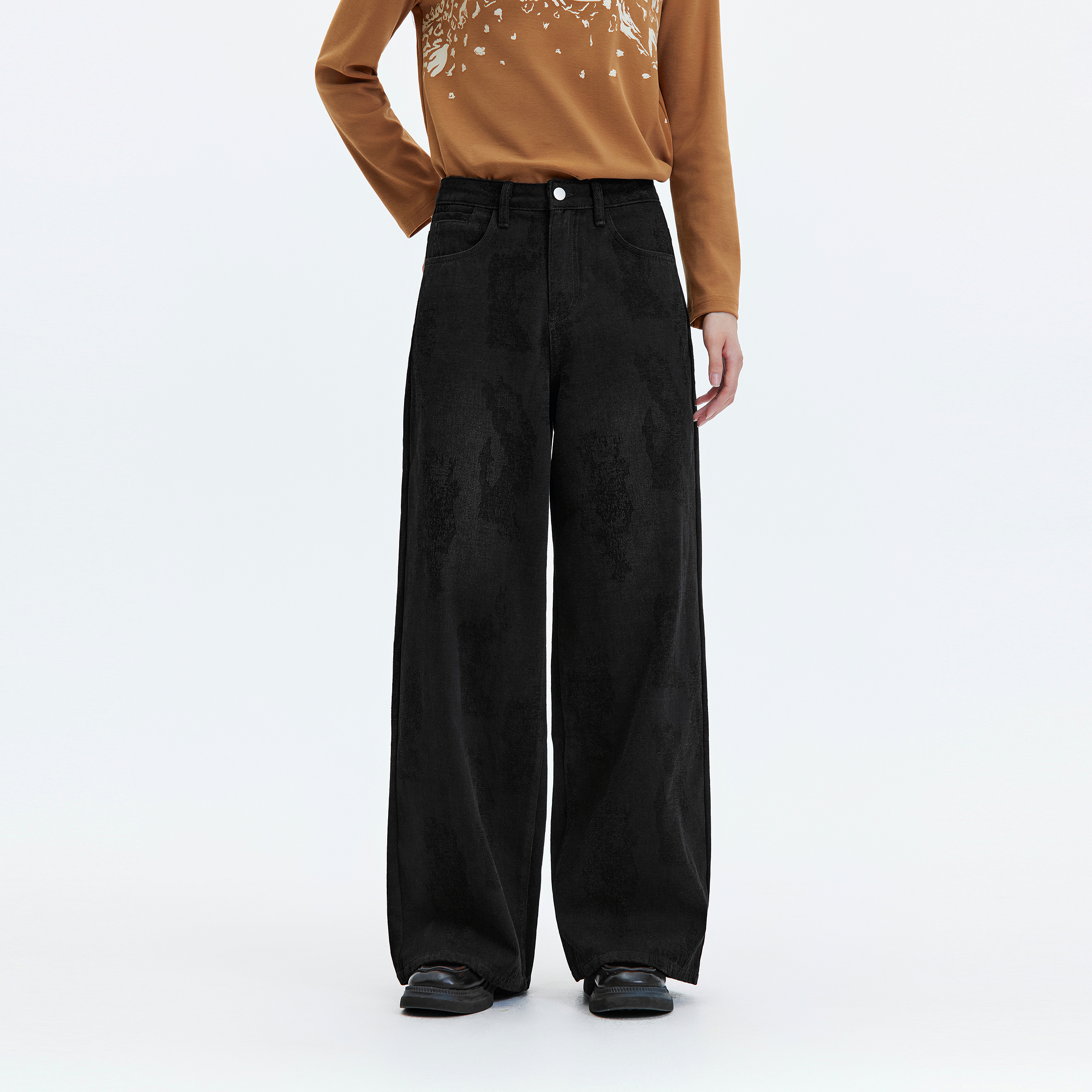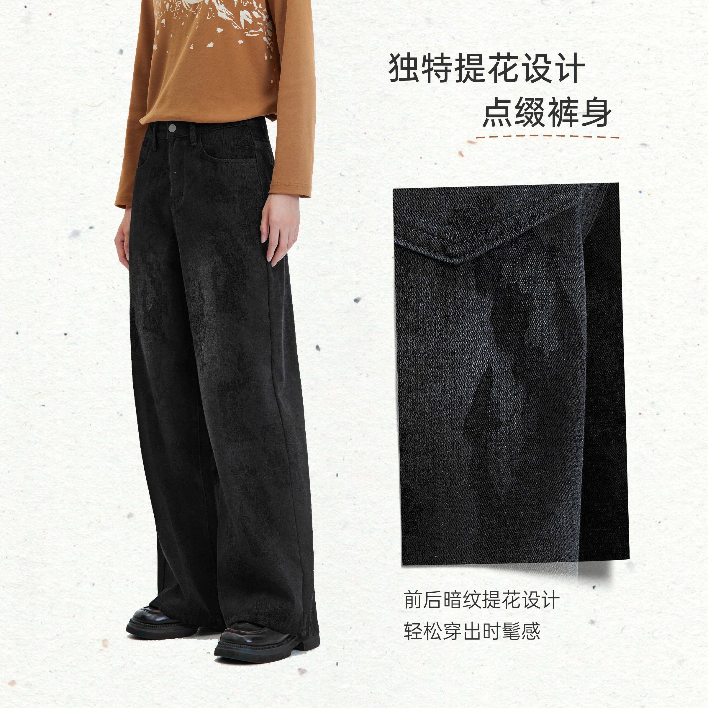 女深色阔腿裤 雪尼尔宽松显瘦黑色牛仔裤 新款 飞鸟和新酒2025冬季