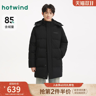 休闲中长羽绒服连帽保暖黑色羽绒服 新款 热风男士 羽绒服2025年冬季