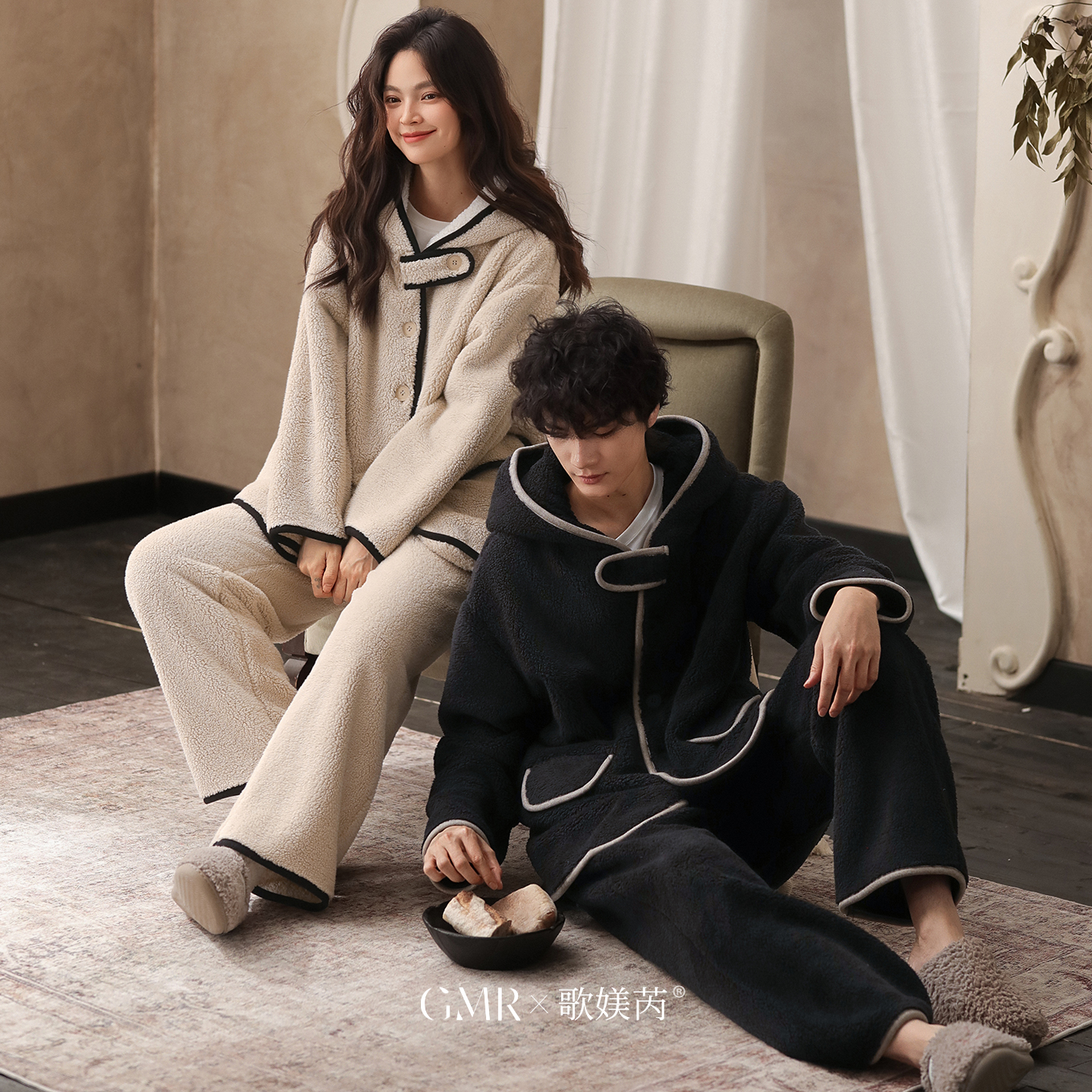 情侣睡衣 tbh野兽派家居都市野兽黑豹法兰绒家居服套装 可外穿冬季