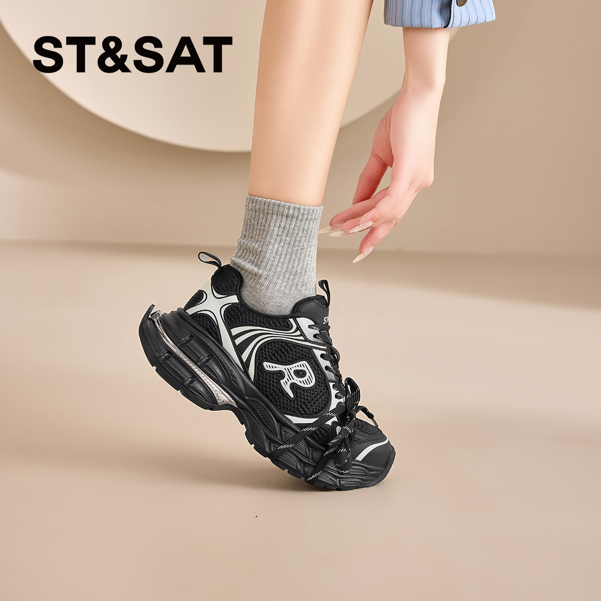 2025秋季 骆驼女鞋 新款 休闲透气老爹鞋 女 厚底增高银色运动鞋 银熠