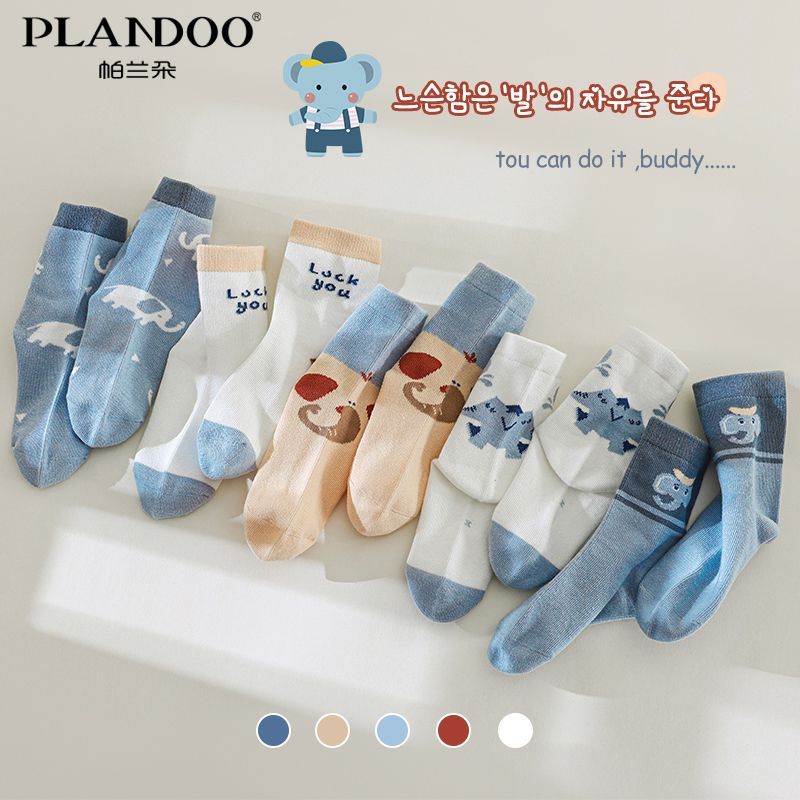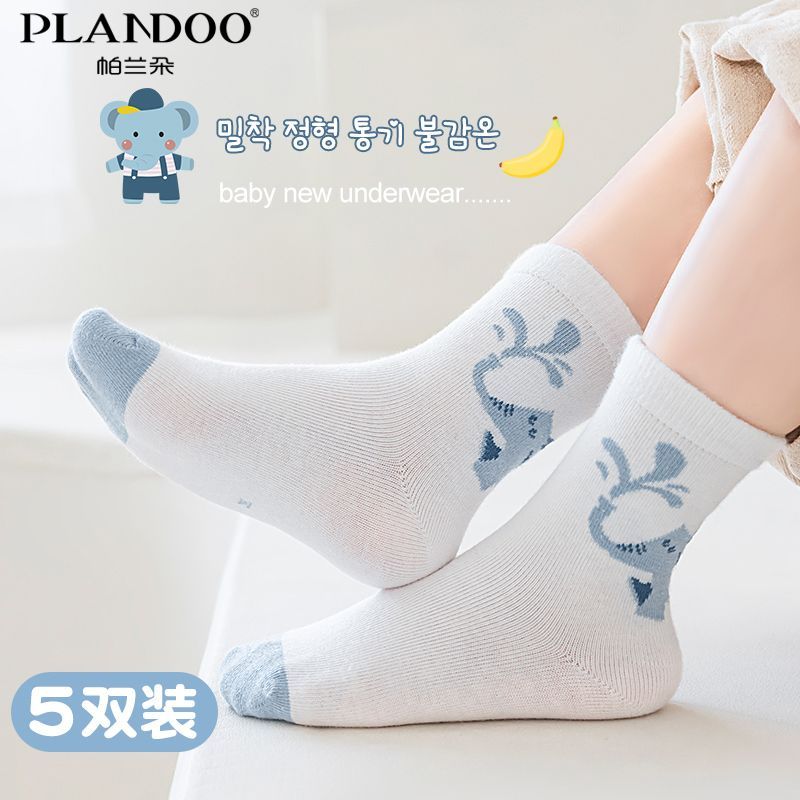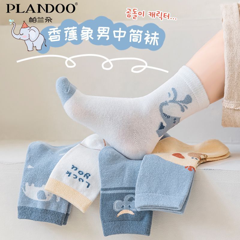 帕兰朵棉质中筒袜可爱卡通蓝色系香蕉象春秋舒适纯色百搭中筒童袜