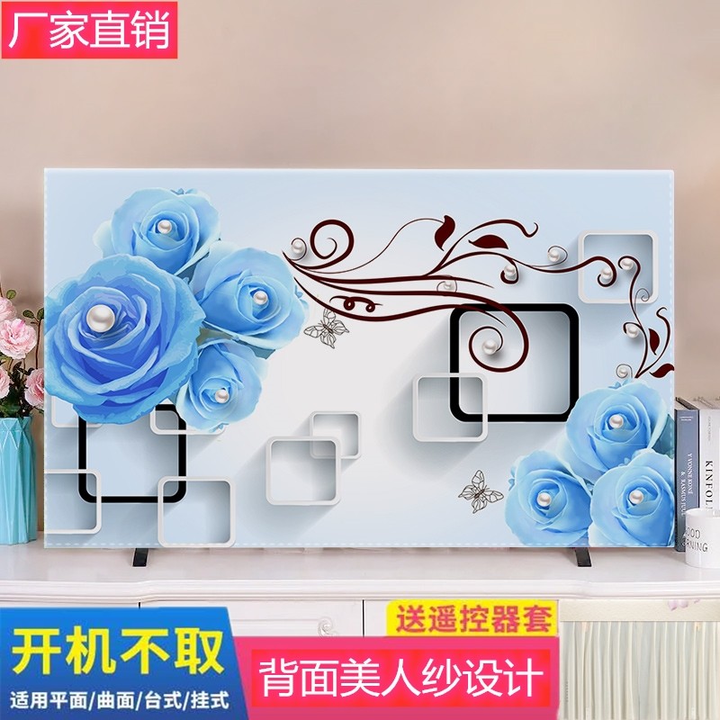 电视机罩高档55寸液晶电视防尘罩套布艺家用挂式 65寸开机不取 台式