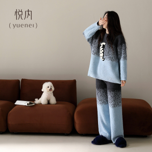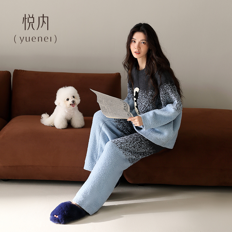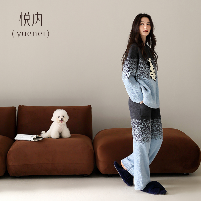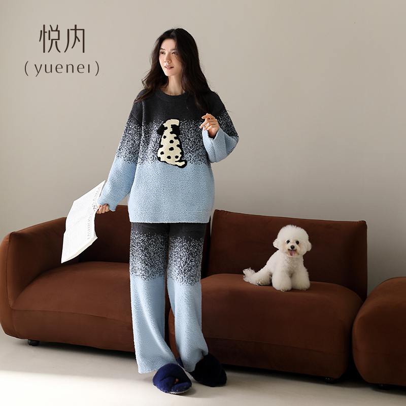 悦内半边绒睡衣女冬季 珊瑚绒加厚家居服冬天保暖卡通狗渐变 秋冬款