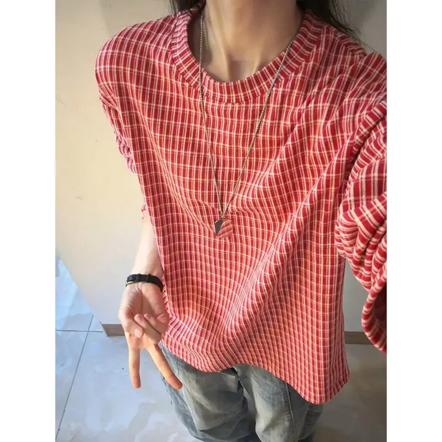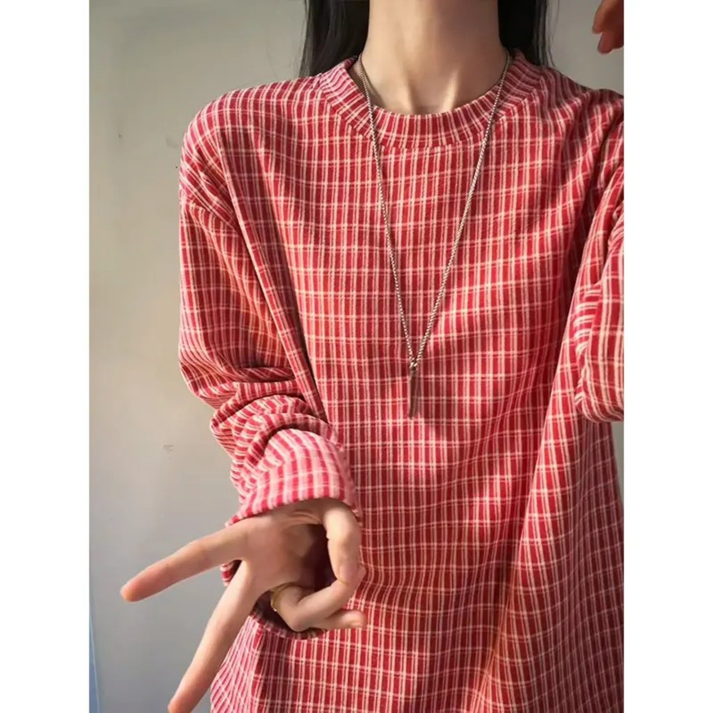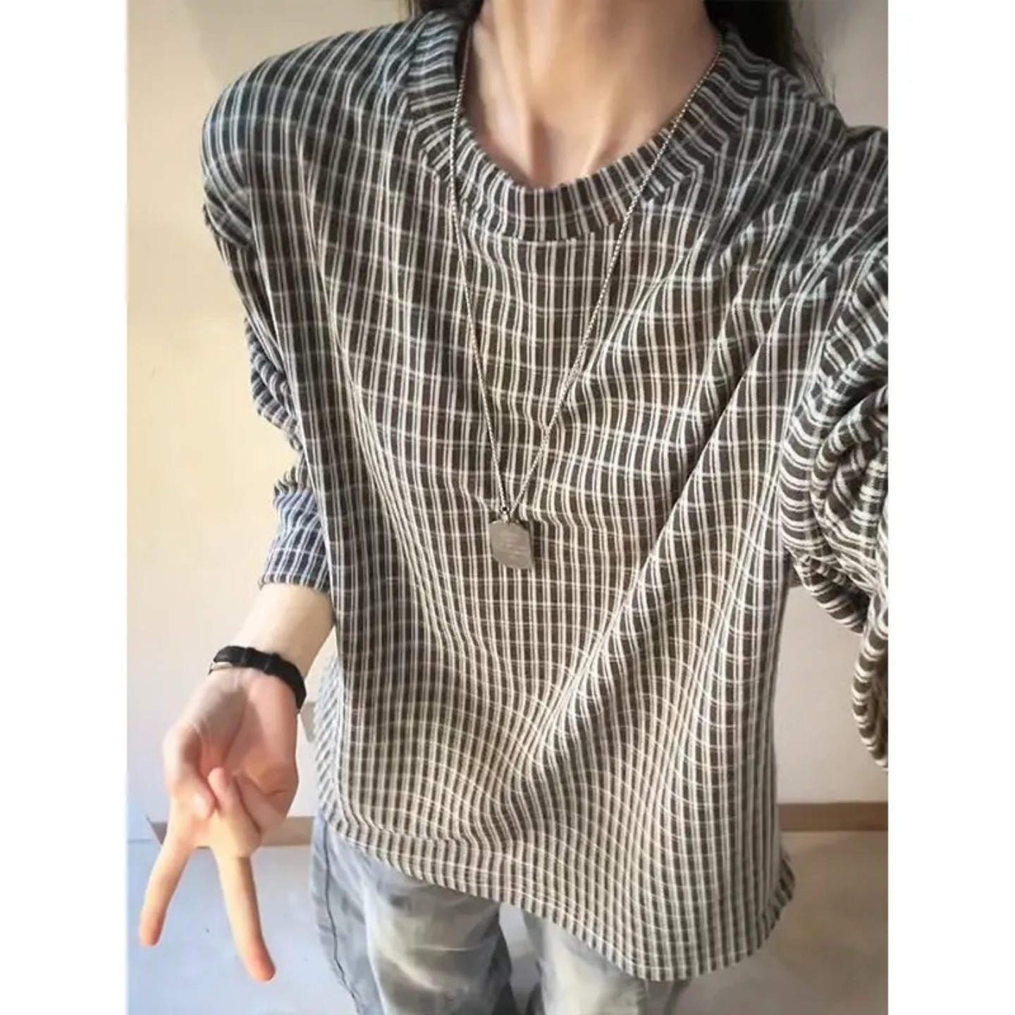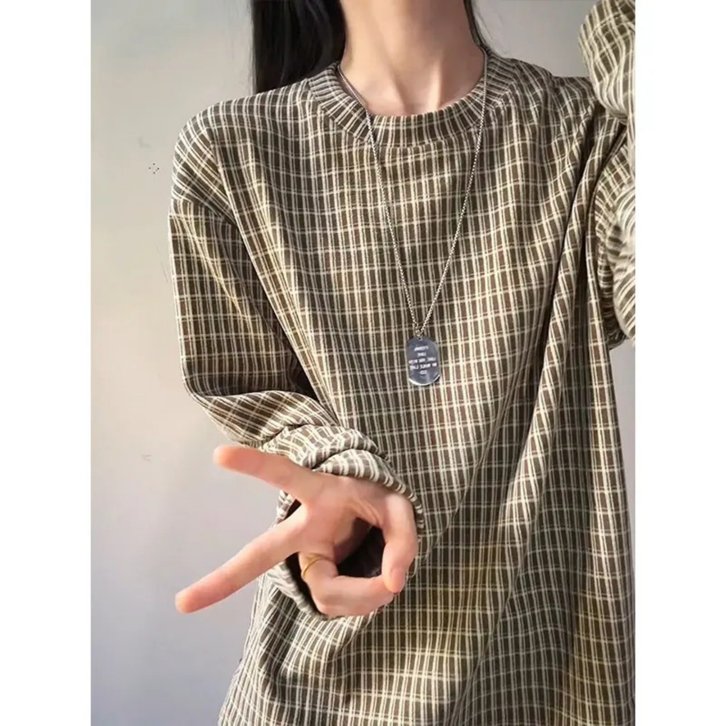 t恤高级感情侣内搭卫衣 男女秋冬德绒长袖 美式 高街格子保暖打底衫