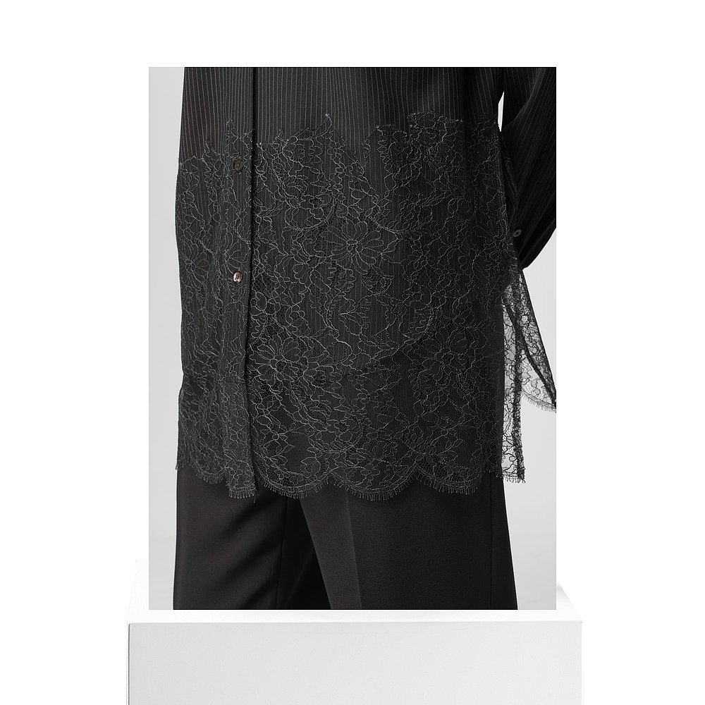 18345614 女长袖 设计师款 佐丹奴宽松miu系学院风花边立领格纹衬衫