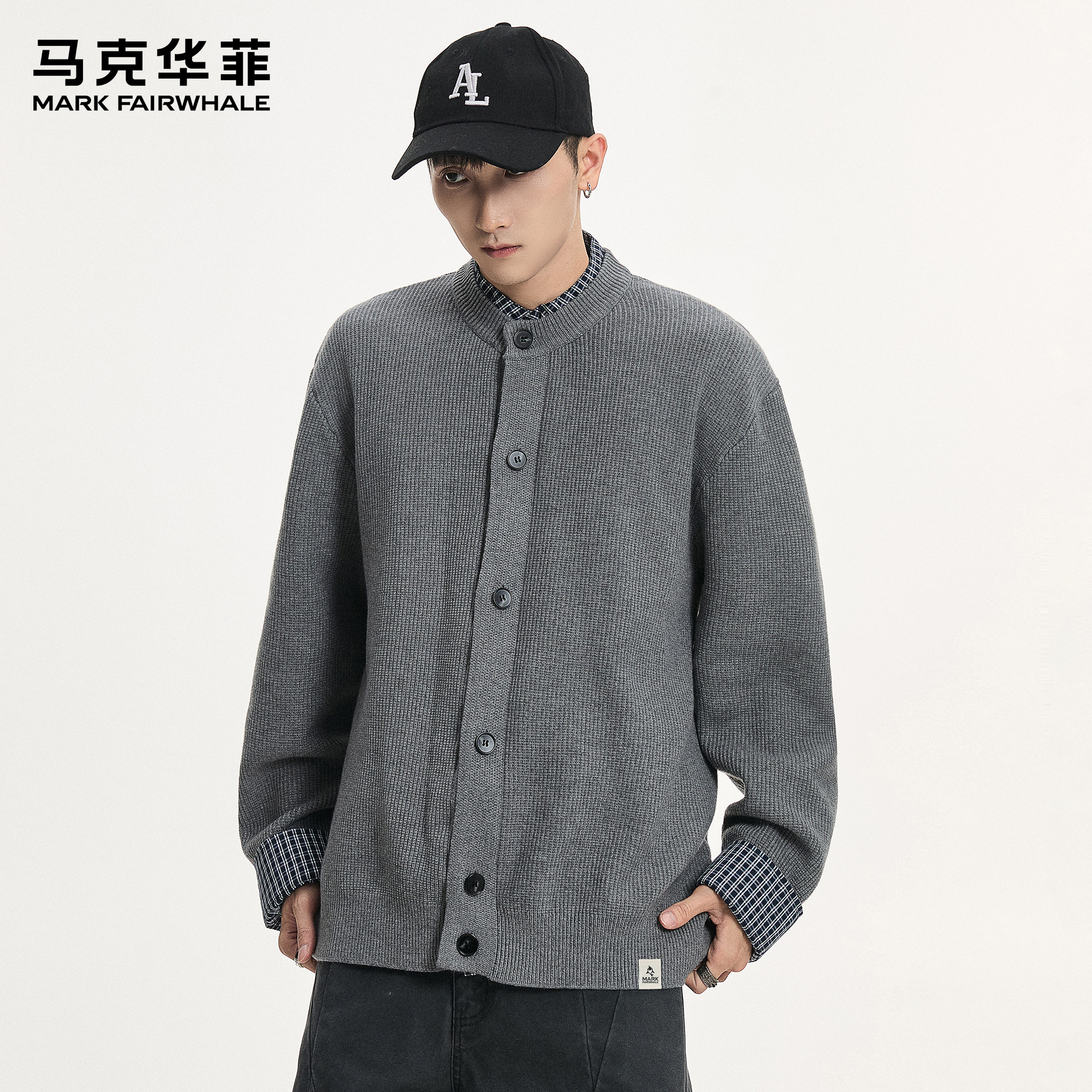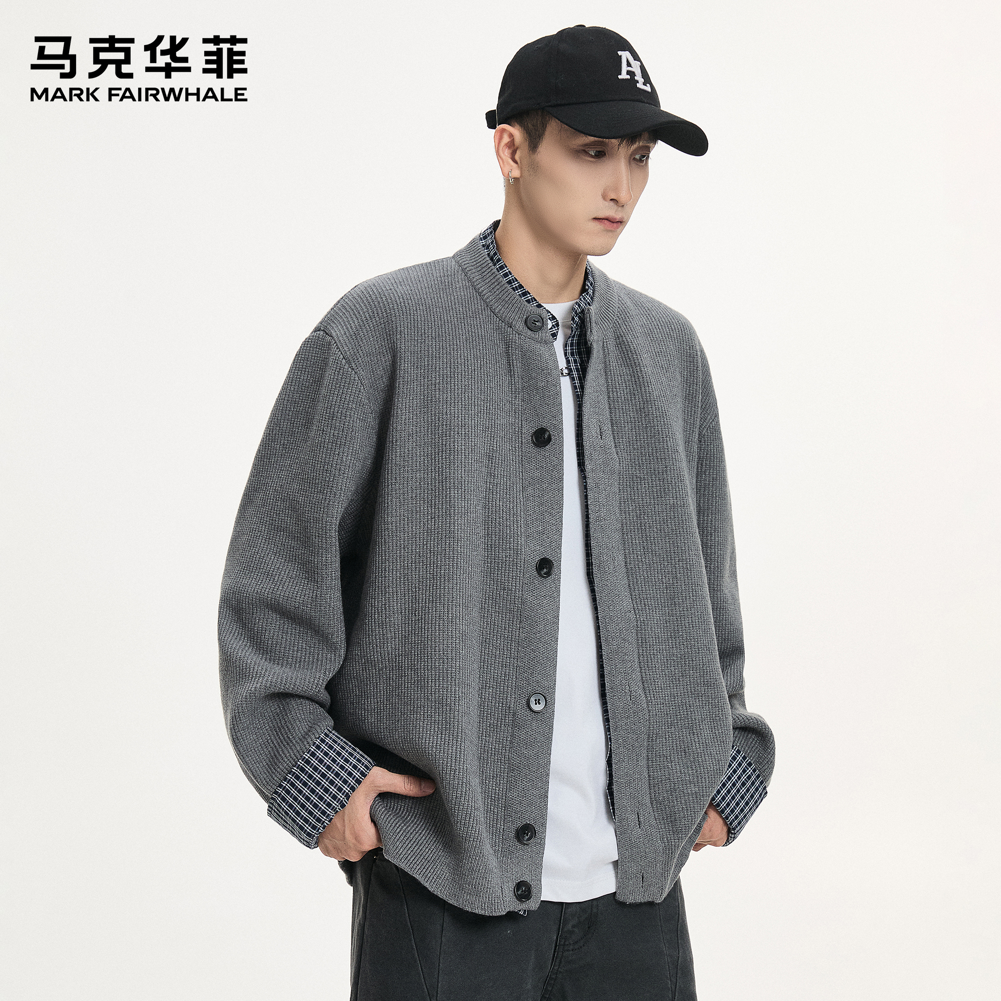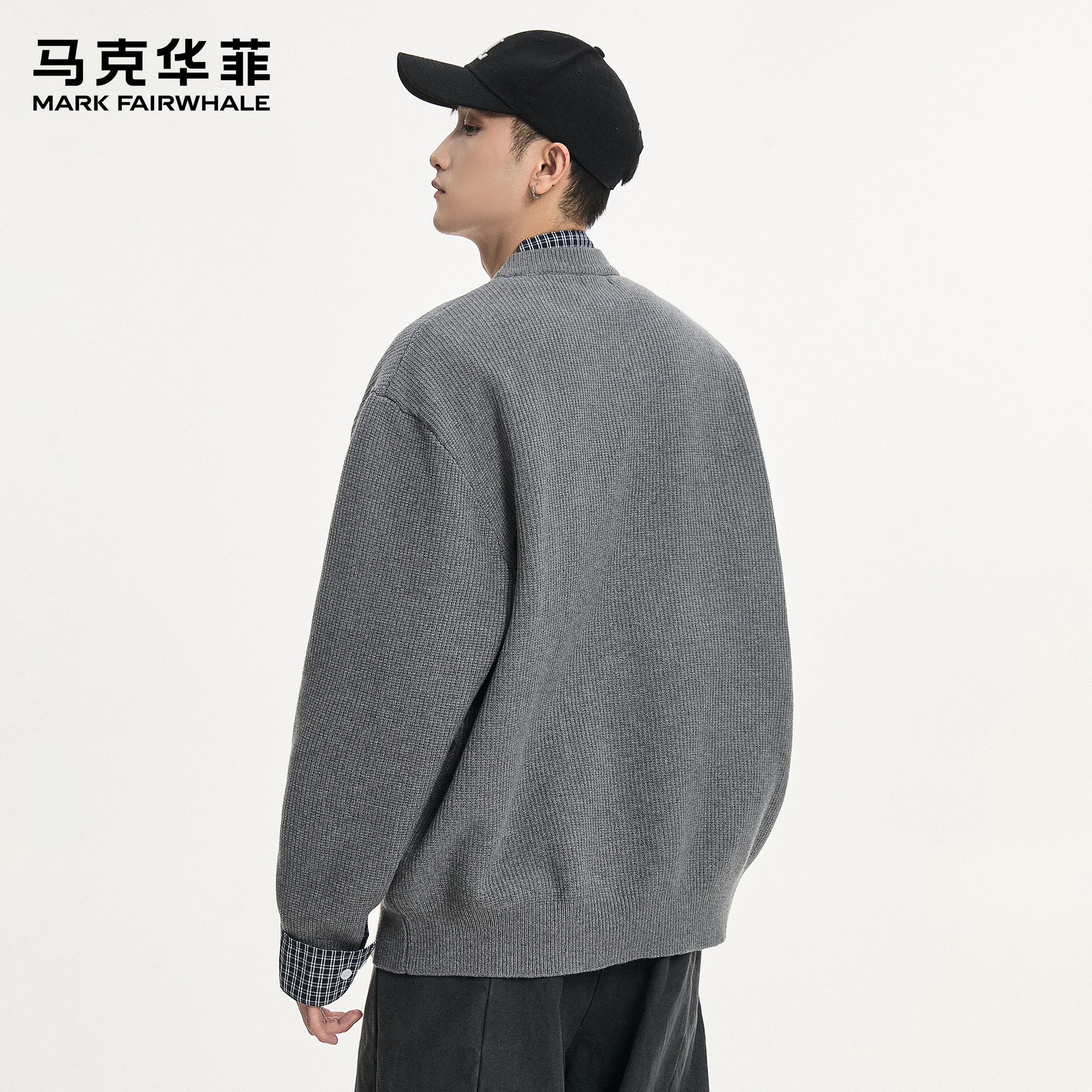 V37重磅立领双开拉链纯色毛衣男秋潮牌cleanfit高级感针织衫 外套