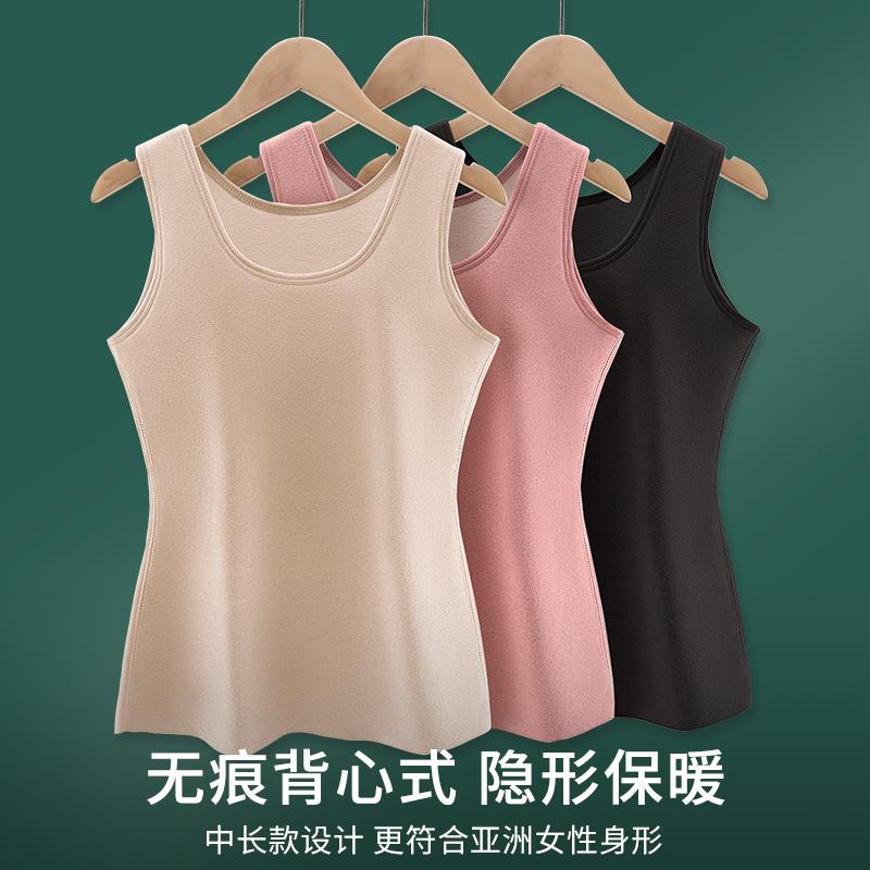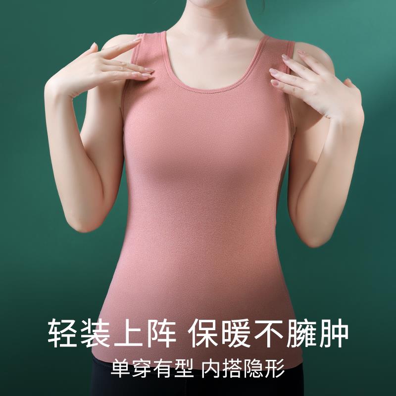 保暖背心女大码 打底上衣 免穿带文胸垫可拆卸德绒发热内衣秋冬季