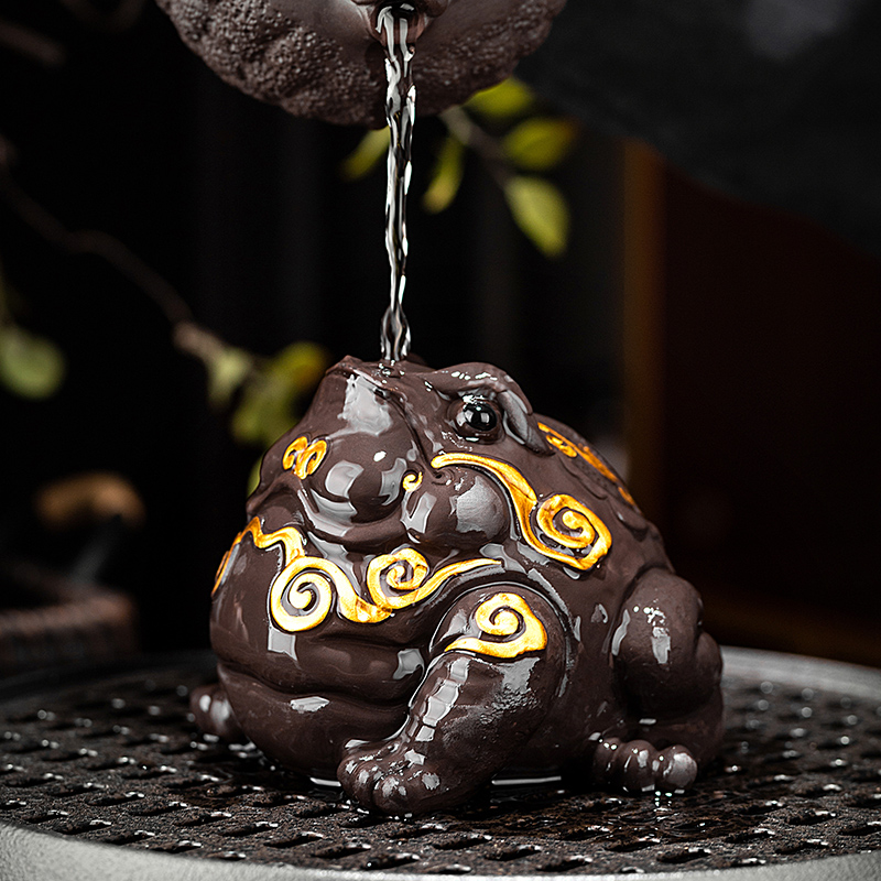 招财金蟾紫砂茶宠可养手工茶玩茶桌茶台茶盘装 饰精品摆件茶具配件