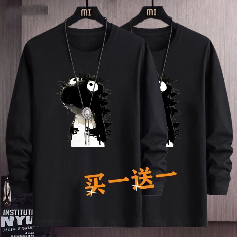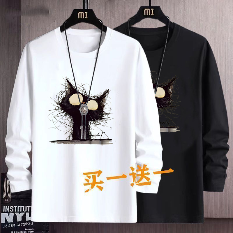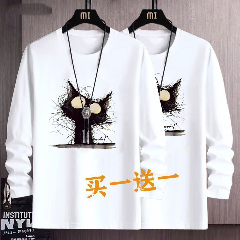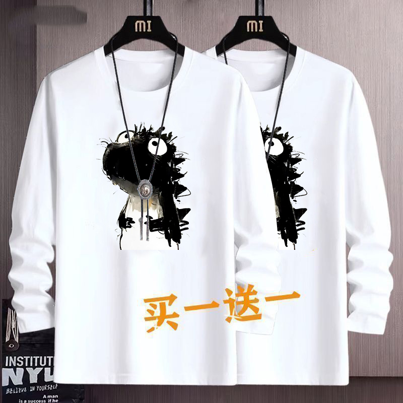 情侣春秋内搭打底衫 纯棉长袖 韩版 印花港风潮流宽松大码 潮 T恤男士