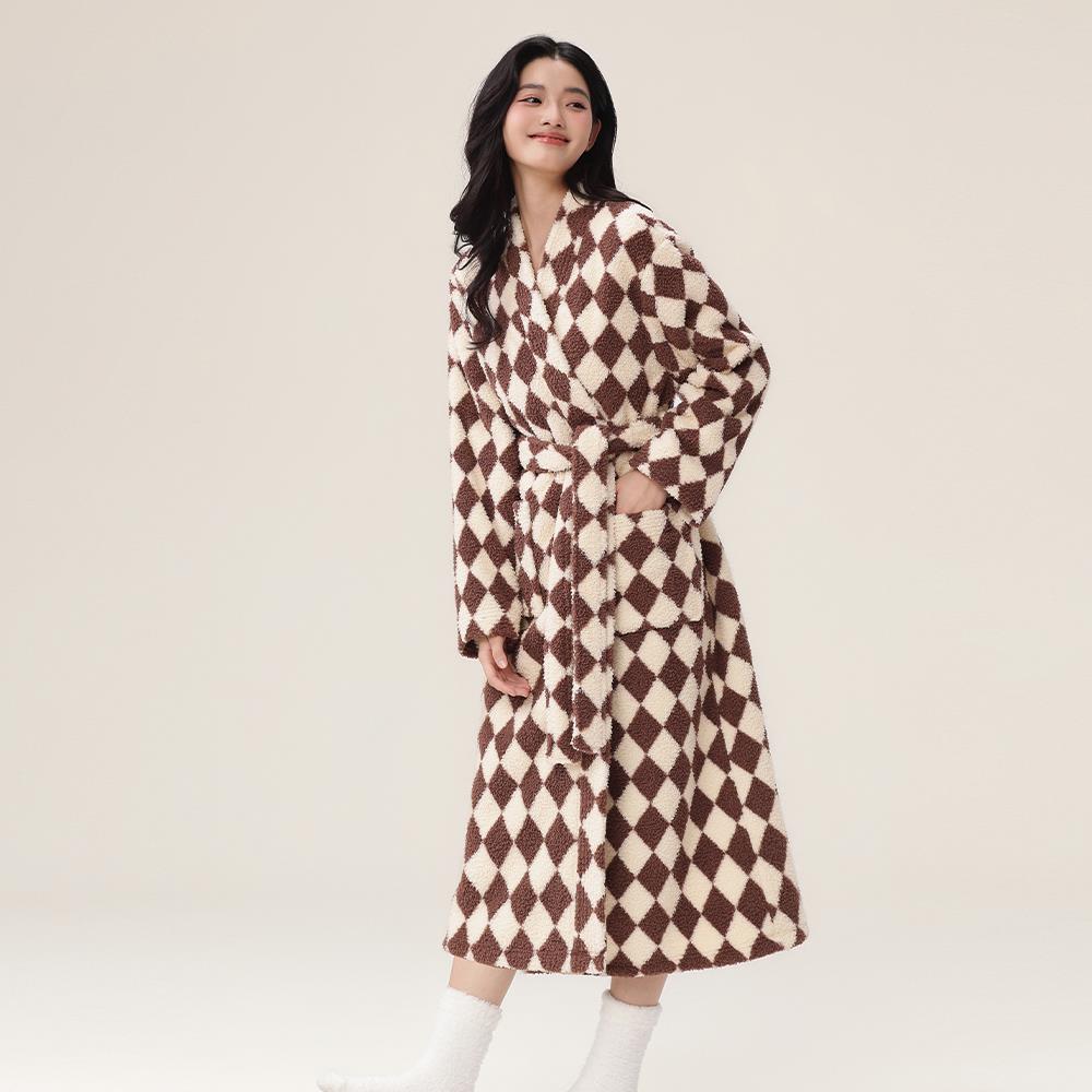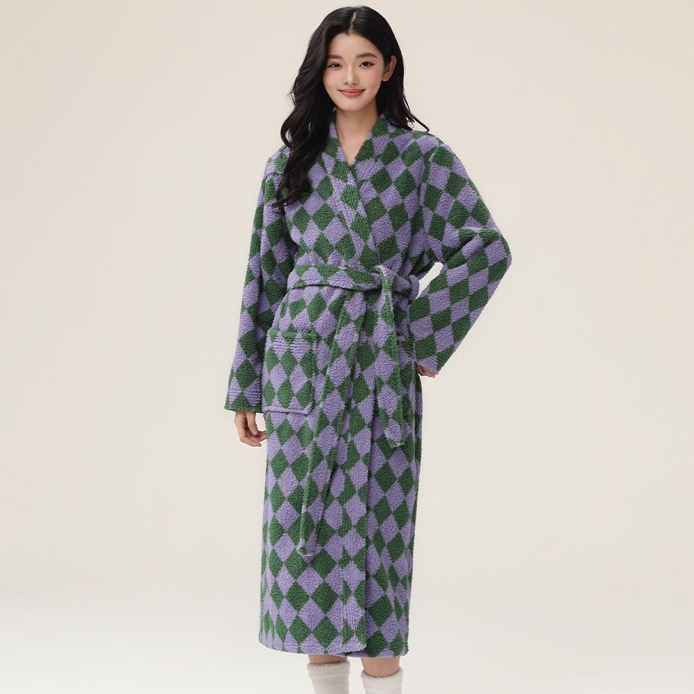秋冬2025年新款 加绒加厚菱格睡衣男1009c 女士睡袍情侣浴袍秋冬季