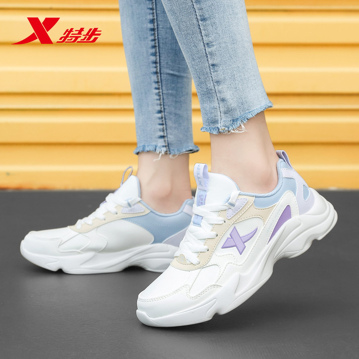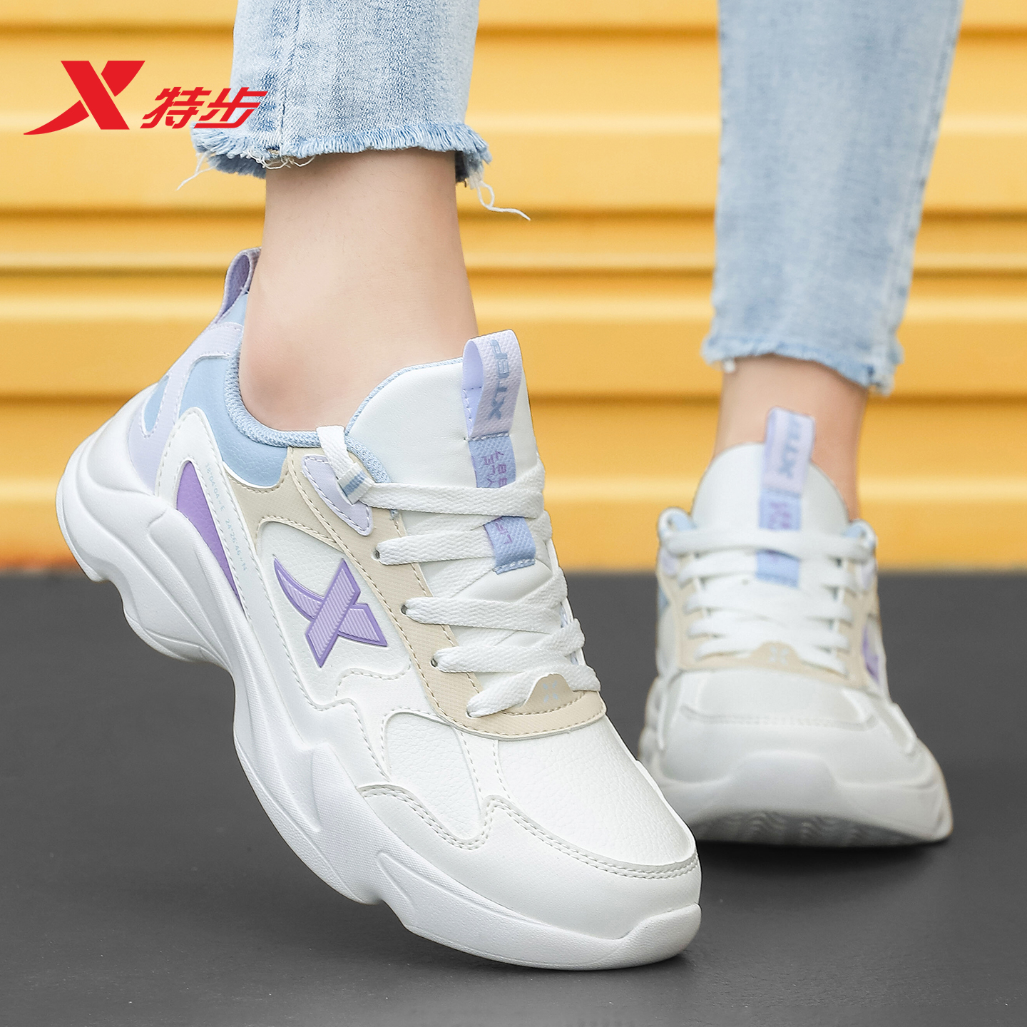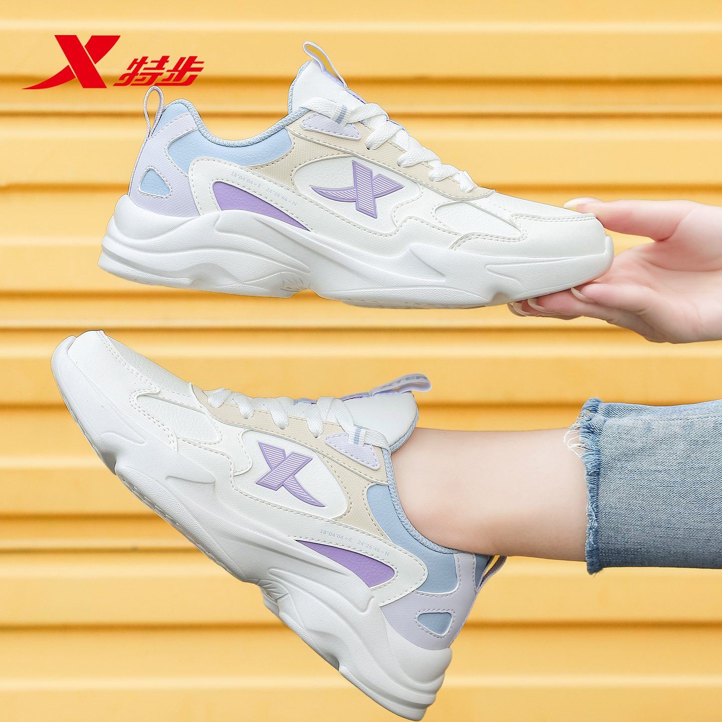 休闲鞋 防水皮面运动鞋 2025新款 轻便百搭复古老爹鞋 女 冬季 特步女鞋