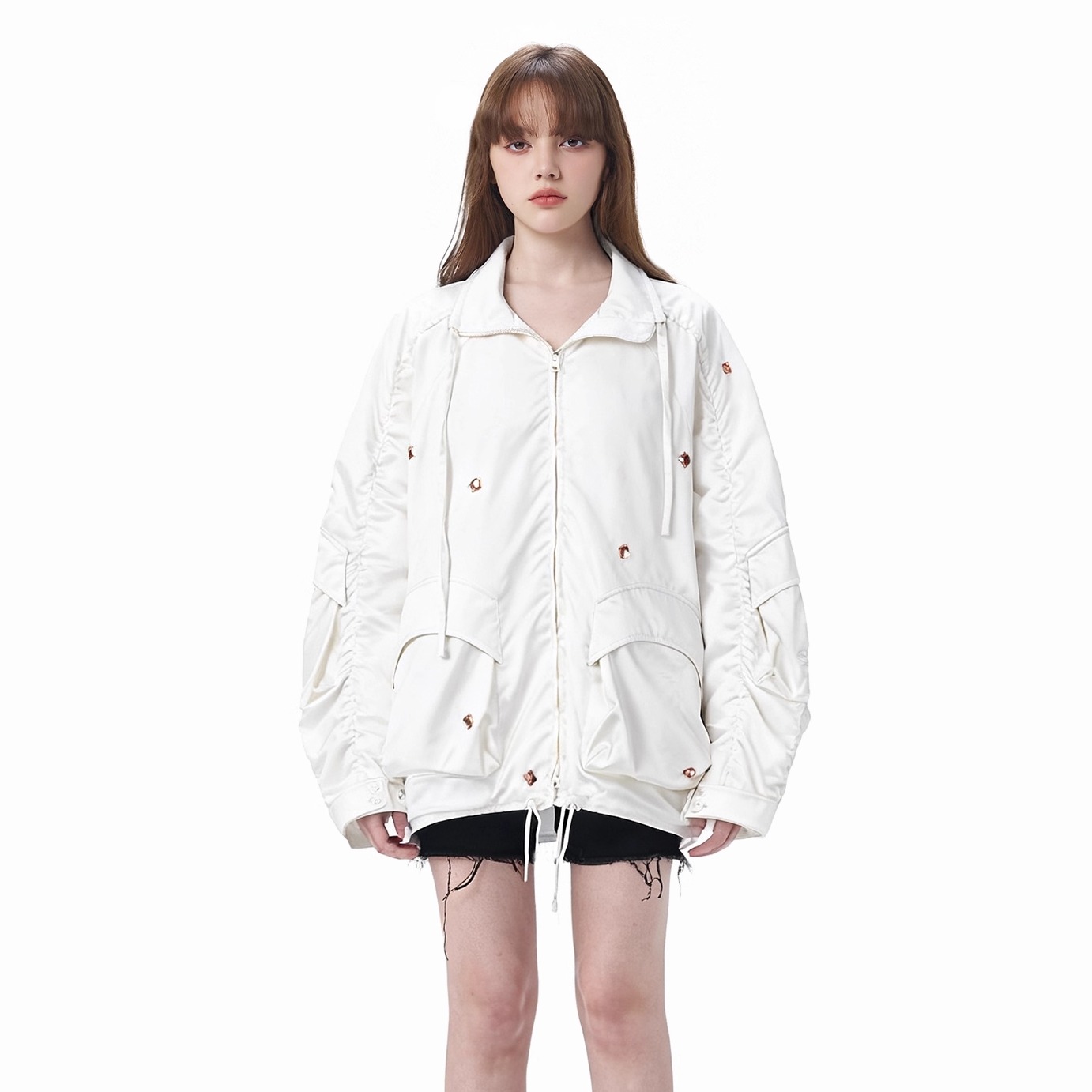 宽松褶皱立领拼接缝钻上衣男女同款 商场同款 新款 TOFOURTH外套