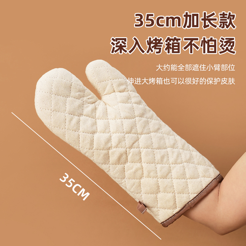 耐高温蒸烤箱用防烫手套加长加厚棉麻防滑微波炉隔热手套厨房家用