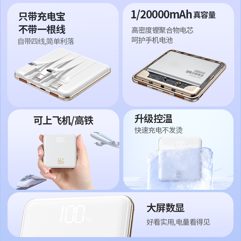 新国标3c认证可上飞机官方旗舰店正品 充电宝超大容量20000毫安自带线超薄小巧便携超级快充移动电源手机通用
