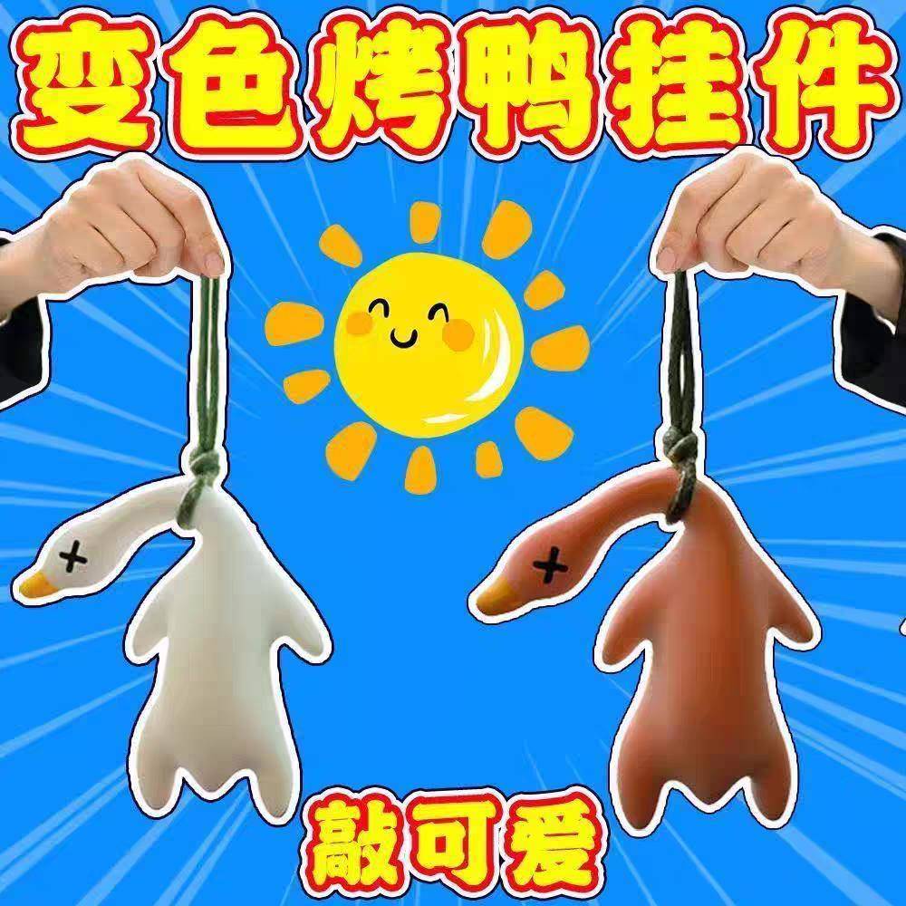 变色烤鸭汽车挂件创意鸭子挂饰车载网红挂件紫外线温感变色熟鸭