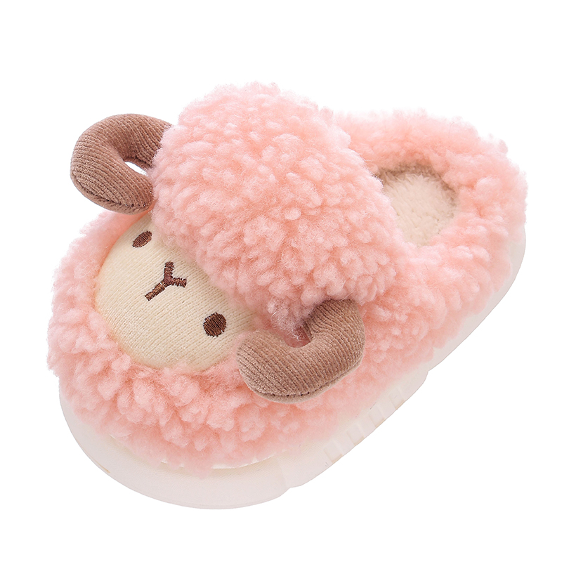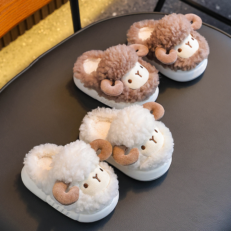 冬季 男女童保暖加绒毛毛中小童婴幼儿居家宝宝小羊棉拖 儿童棉拖鞋