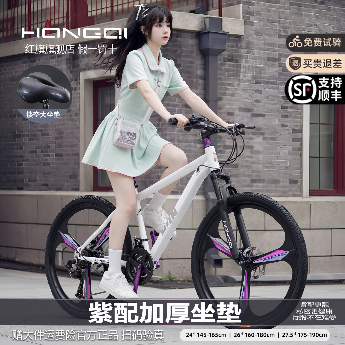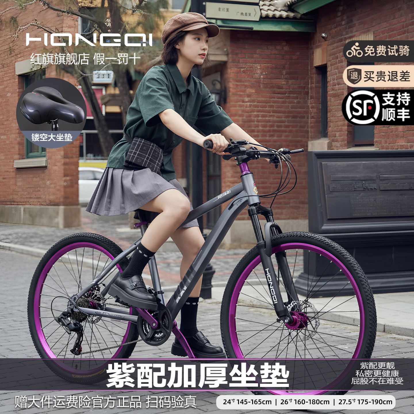红旗官方铝合金山地车成人轻便自行车青少年男女学生越野变速单车
