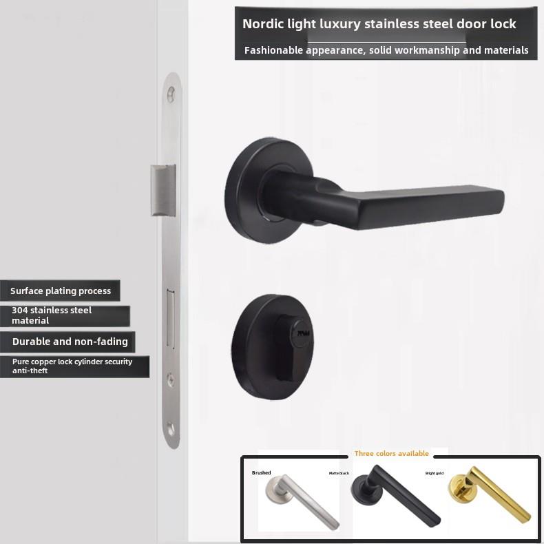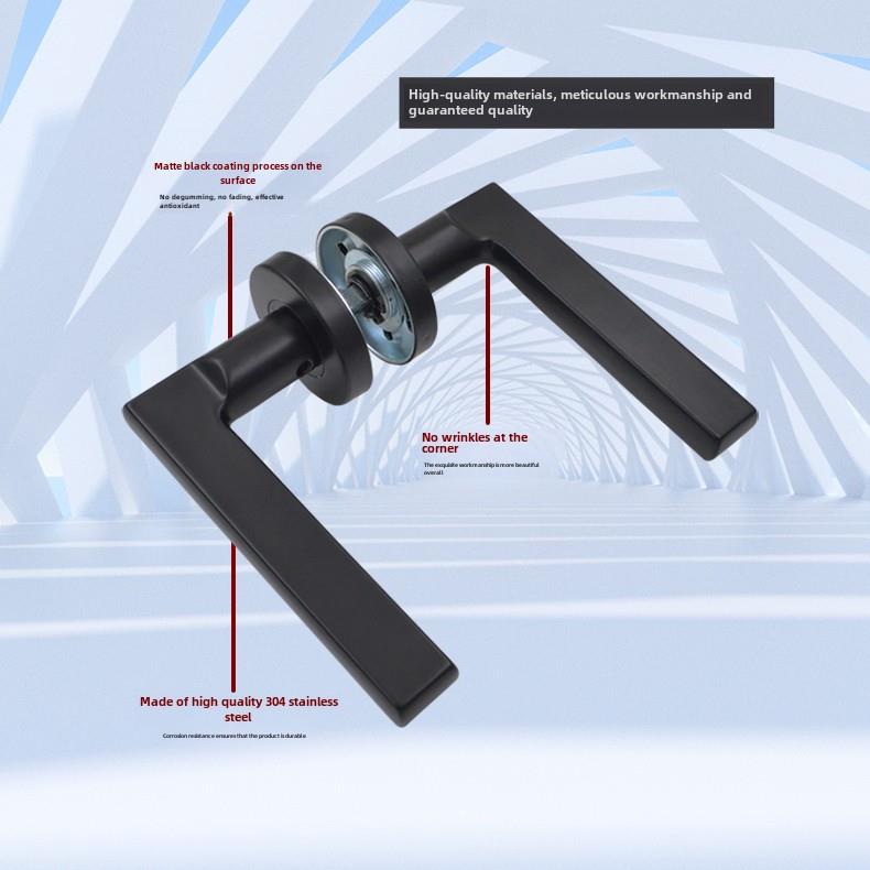 304不锈钢门把手室内门隐形开叉锁门把手简易美式 黑把手防火锁