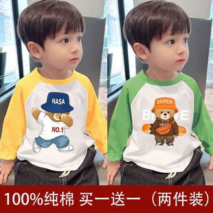 男童女童打底衫 T恤秋季 嘟嘟家儿童长袖 宝宝纯棉上衣童装 两件装