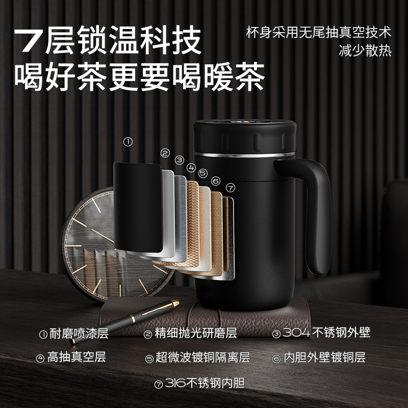 智能办公杯定制印logo刻字高档商务礼品水杯订制带手柄泡茶杯子