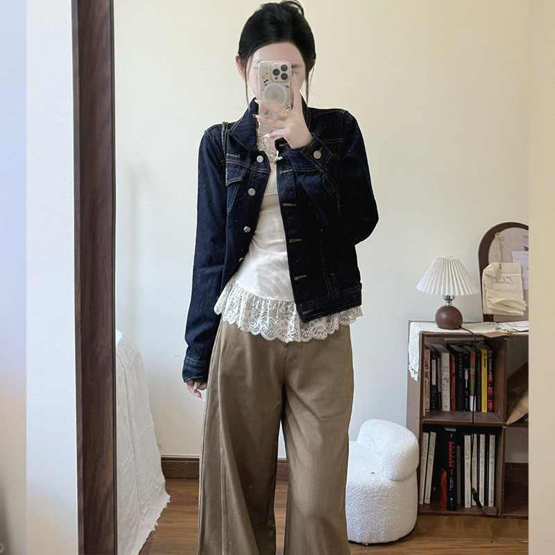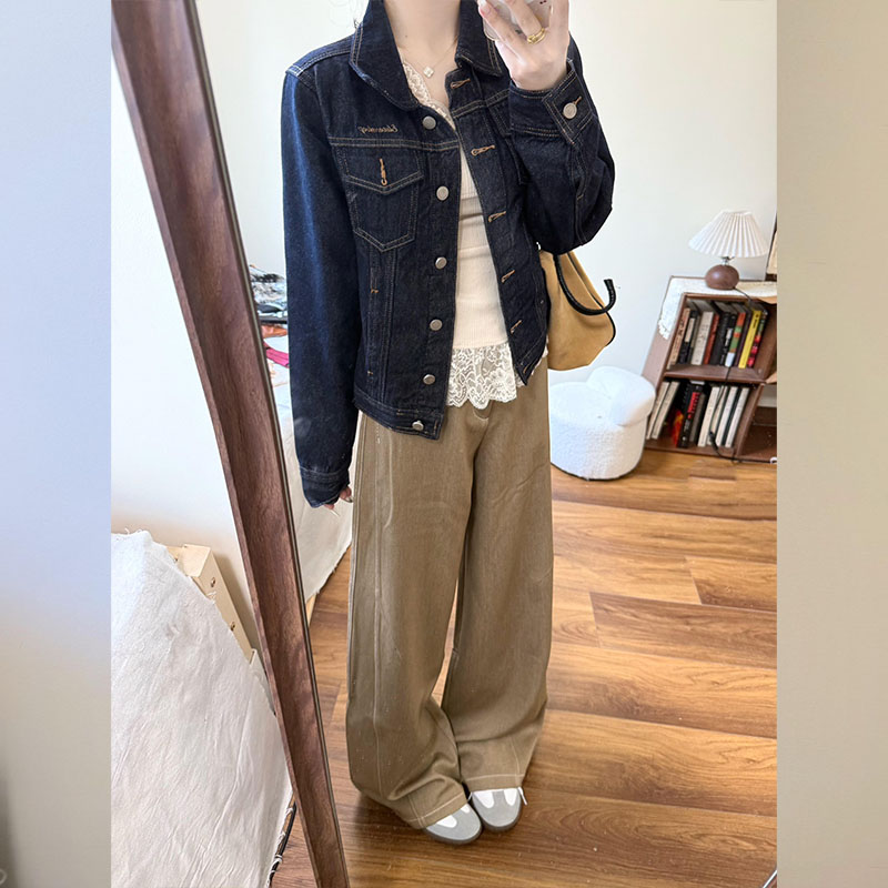 两件套装 时尚 女 早秋冬韩系小个子气质牛仔外套休闲阔腿裤 巨好看