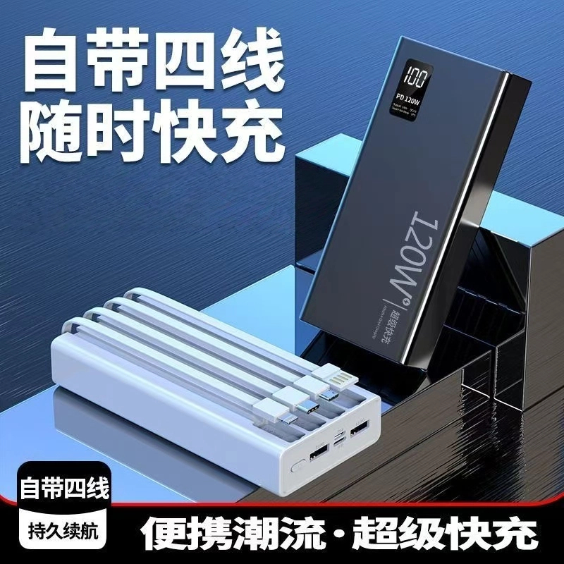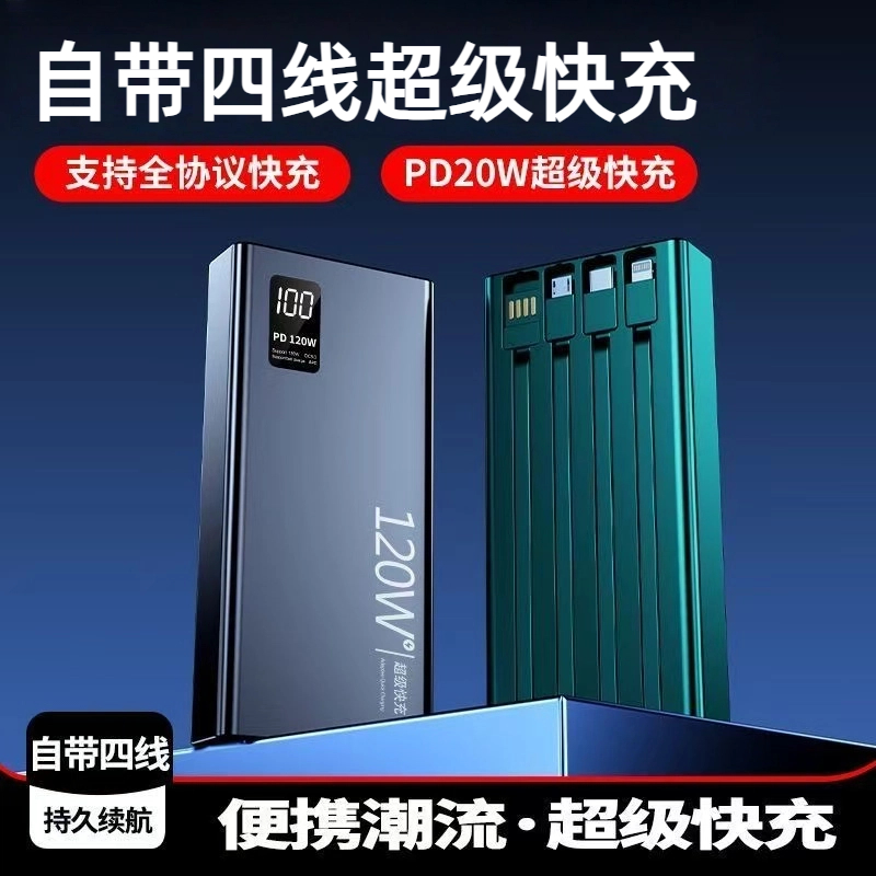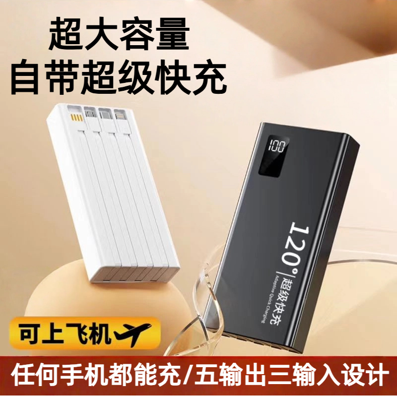 超级快充适用于手机充电专用移动电源 可上飞机充电宝超大容量自带四线高端20000毫安便携式 3C安全认证