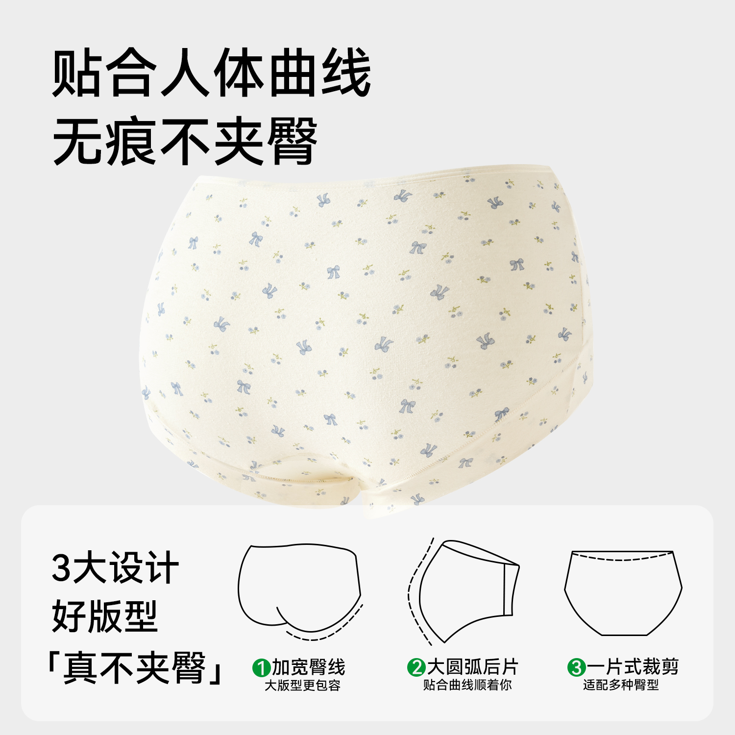 头2025新款 猫人纯棉内裤 女全棉抗菌裆无痕不夹臀碎花女生小平角裤