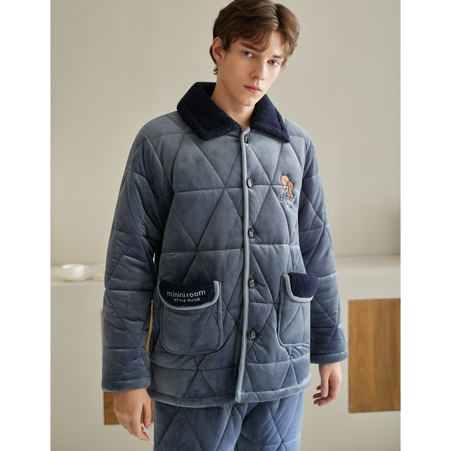 情侣睡衣 tbh野兽派家居熊猫嘭嘭法兰绒家居服套装 可外穿秋冬长袖