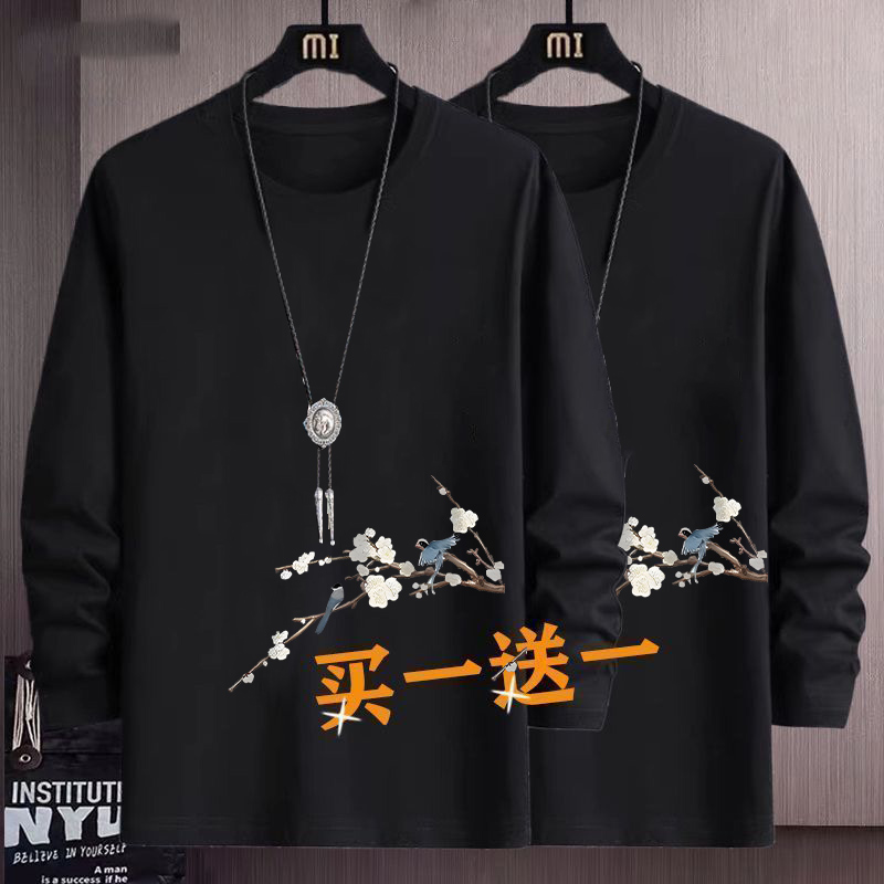 宽松百搭上衣服男 设计感长袖 国潮重磅纯棉大码 潮牌高级感小众时尚