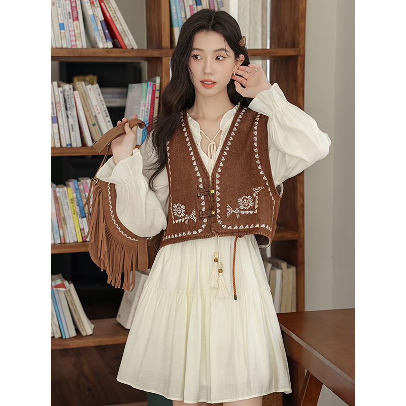 女秋季 无袖 2025款 覆古洋装 叠穿马甲两件套 法式 今年流行漂亮套装