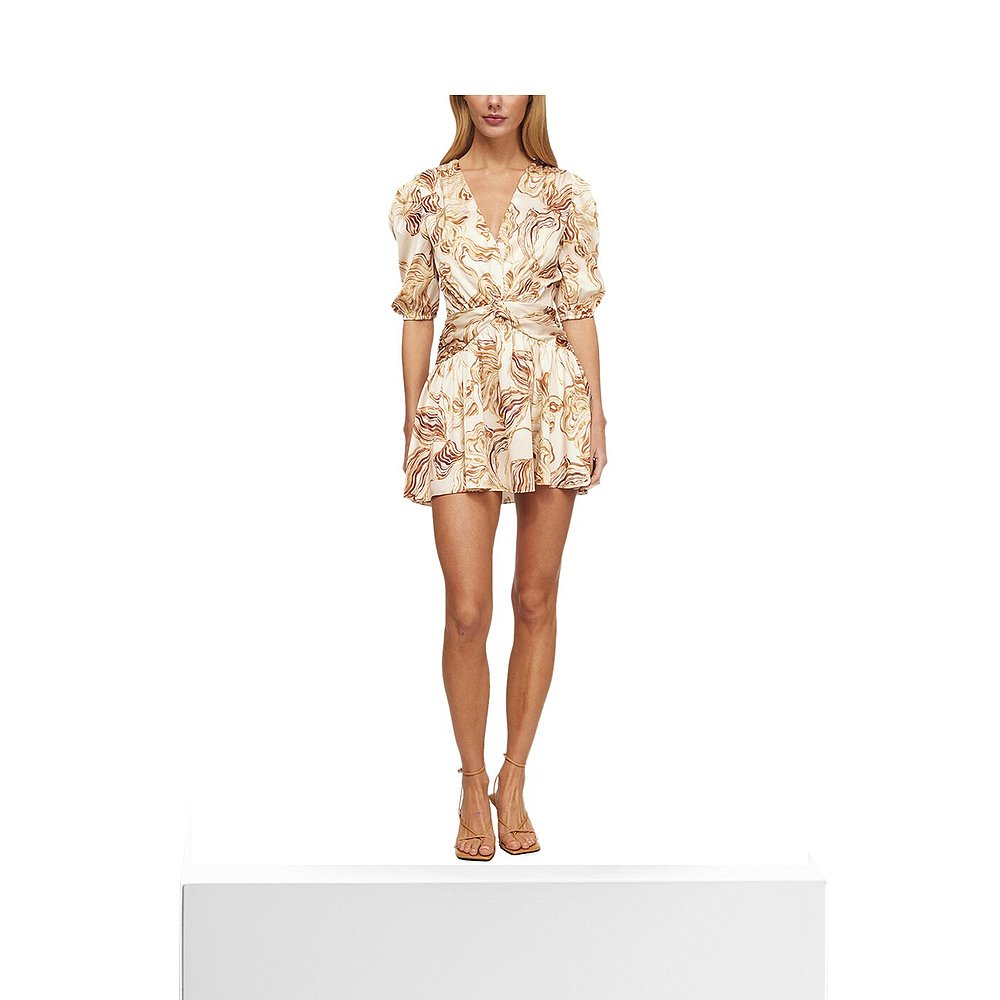 仙气喇叭袖 XZY 气质V领印花连衣裙女25年夏季 微胖法式 短裙 欣争艳