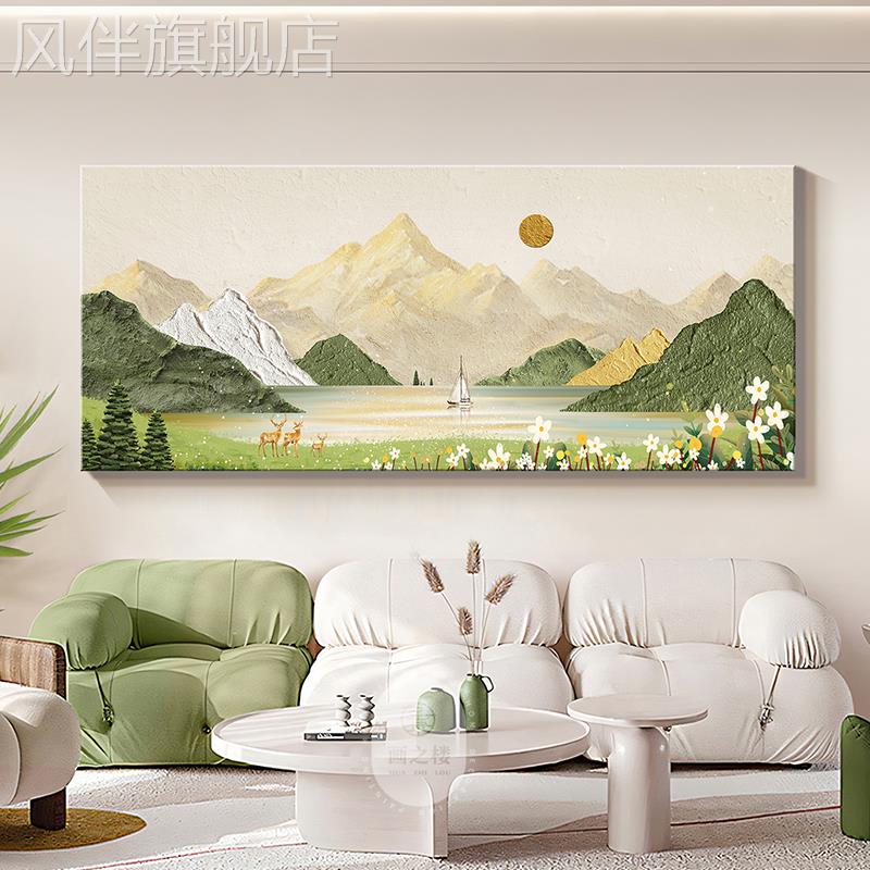 源远流长客厅东墙装 饰画山水风景画日照金山奶油风沙发背景墙挂画