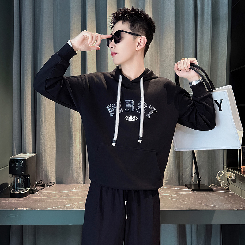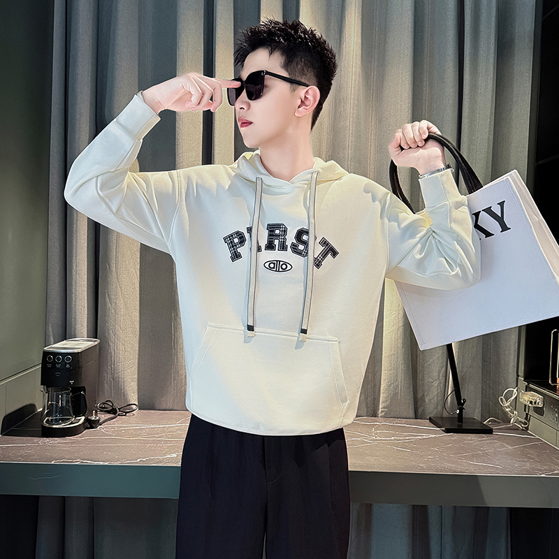 宽松外套 痞帅休闲男装 设计感连帽印花卫衣男潮牌长袖 T恤2025新款
