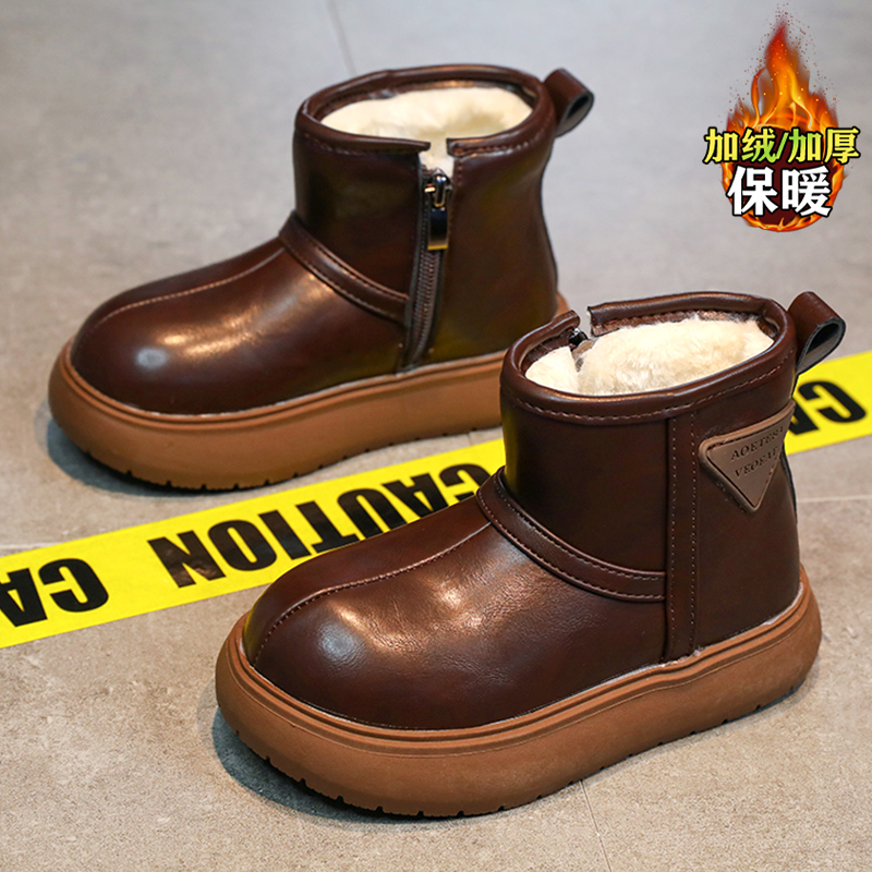 大童女孩皮毛一体大头 儿童大棉鞋 女童雪地靴加绒加厚2025秋季 新款