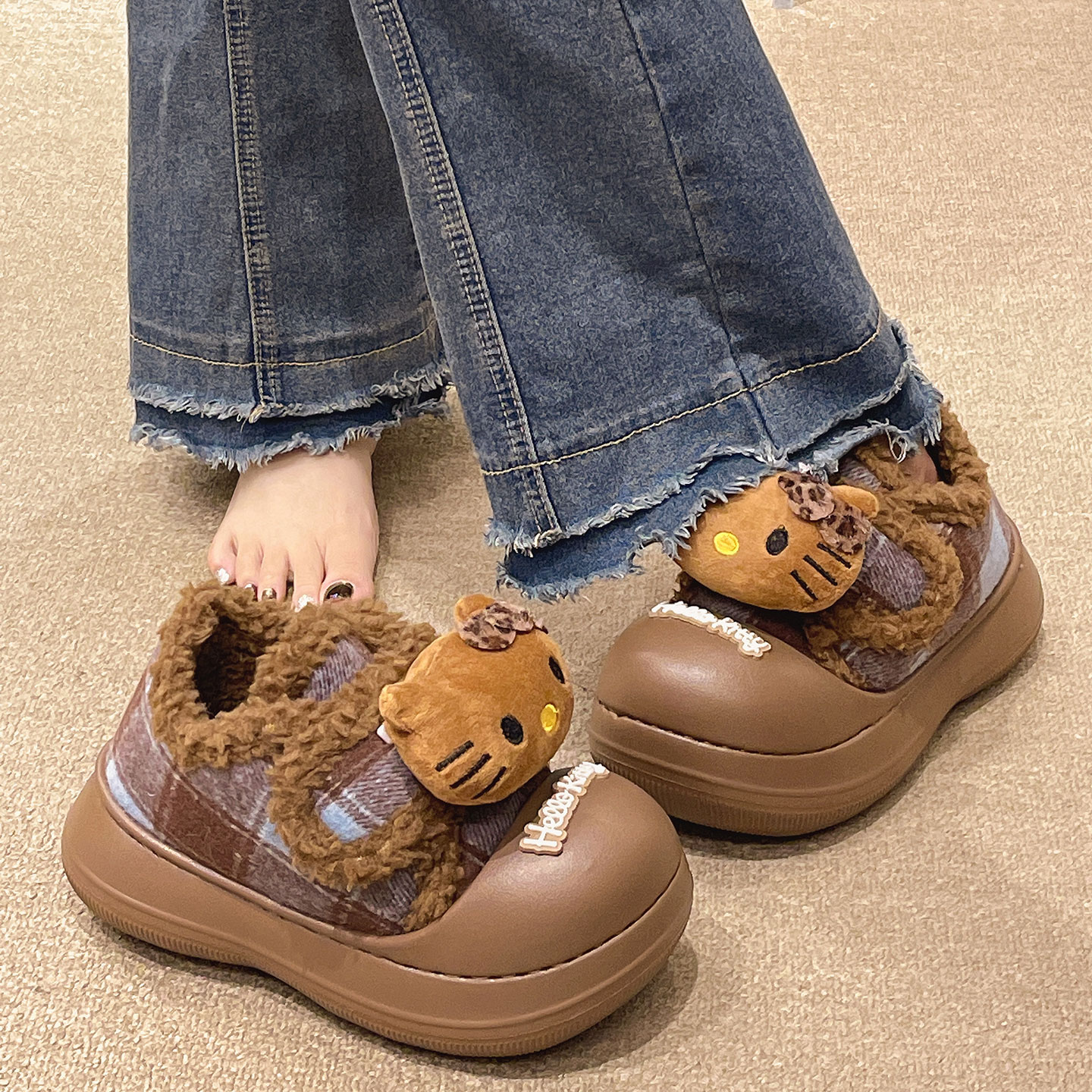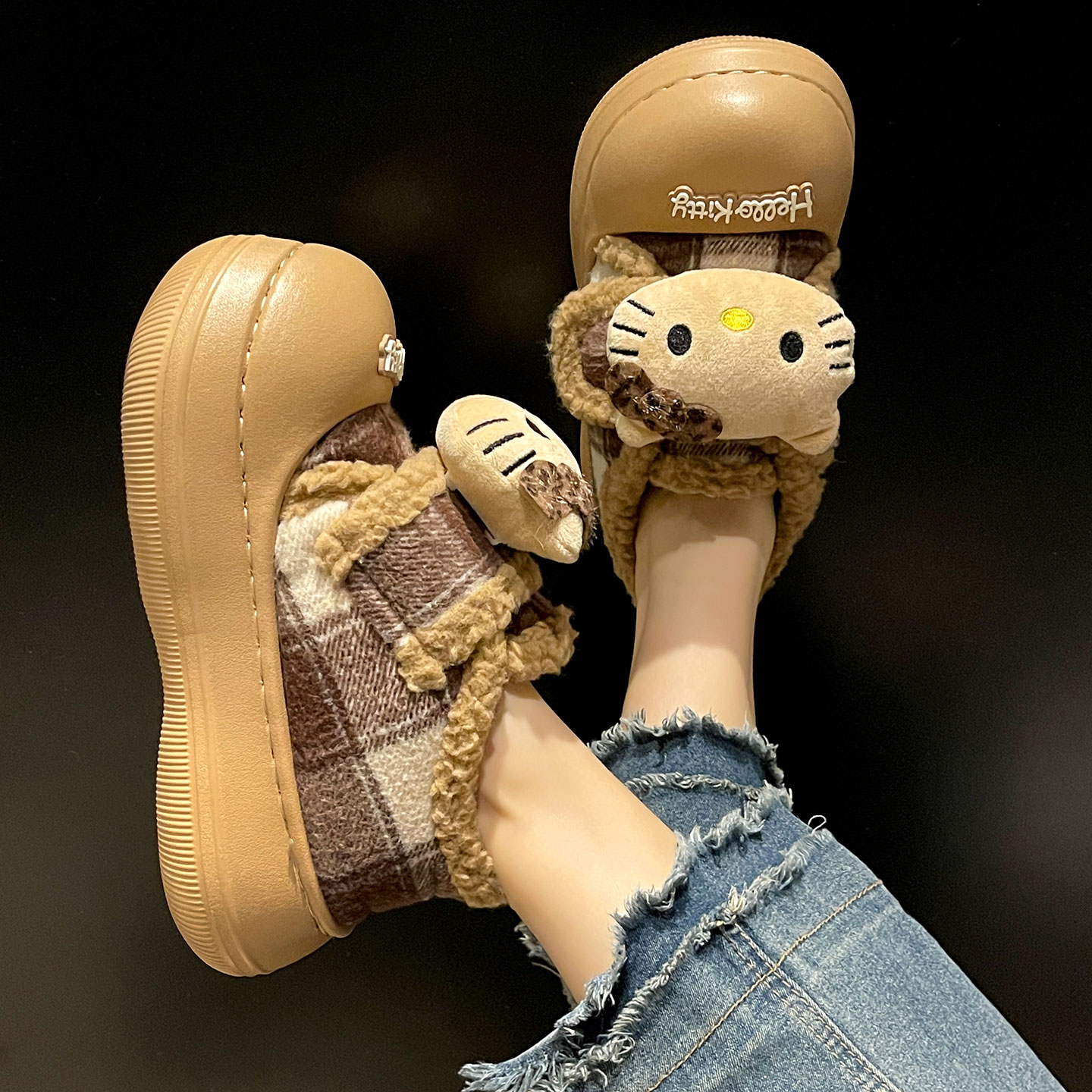 可爱毛毛加绒月子棉鞋 包跟2025新款 女 女士冬季 HelloKitty猫棉拖鞋