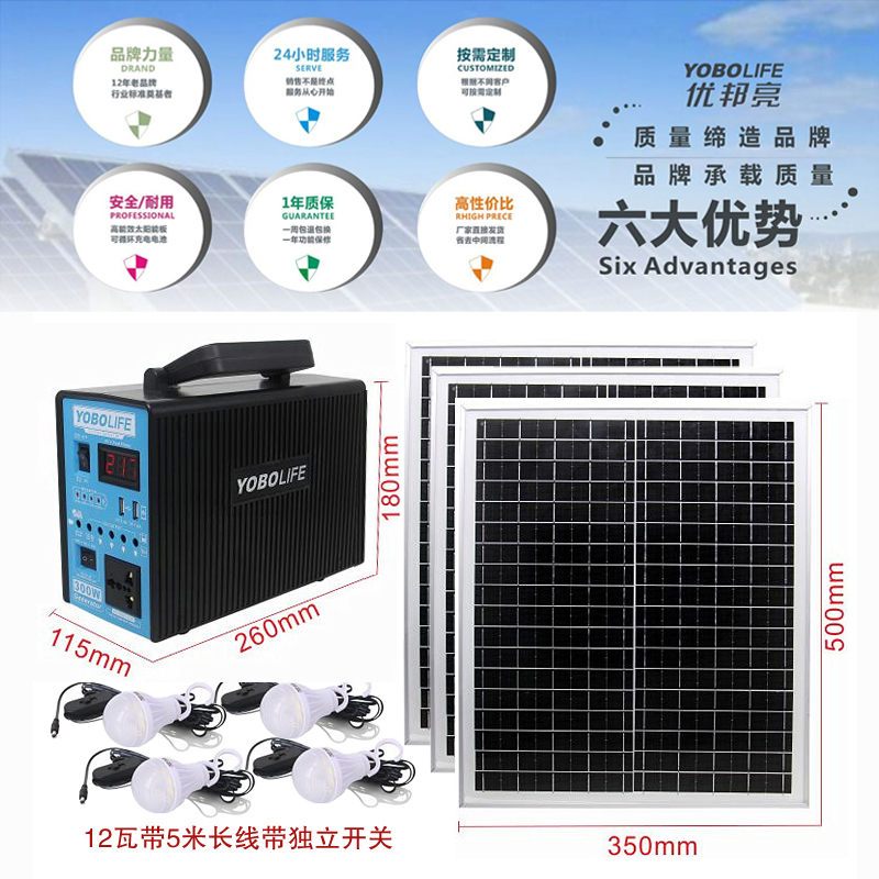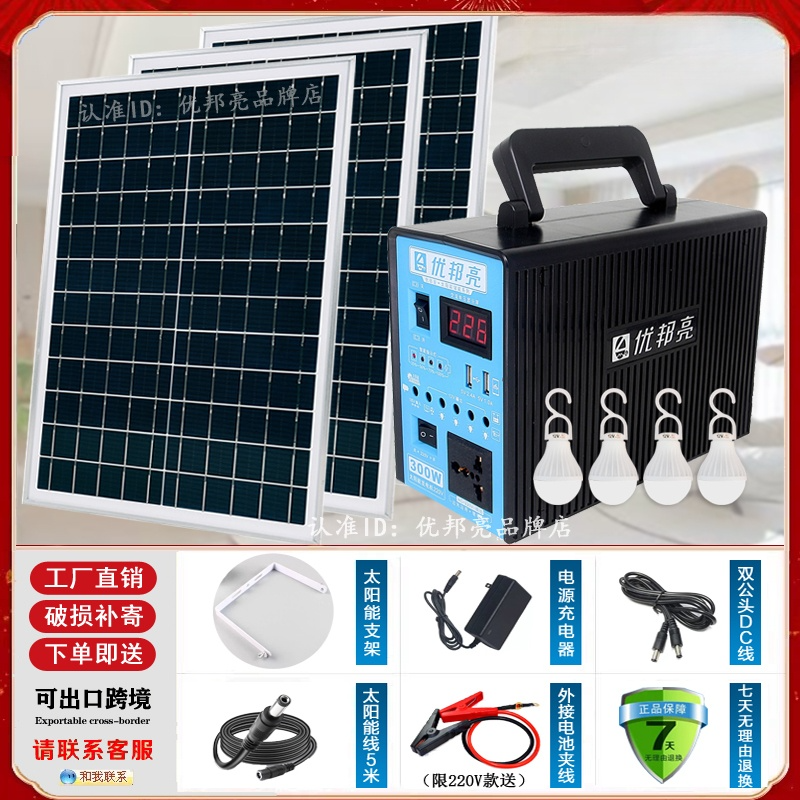 太阳能发电系统全套220V交流电家用户外灯照明蓄电池板能手机充电