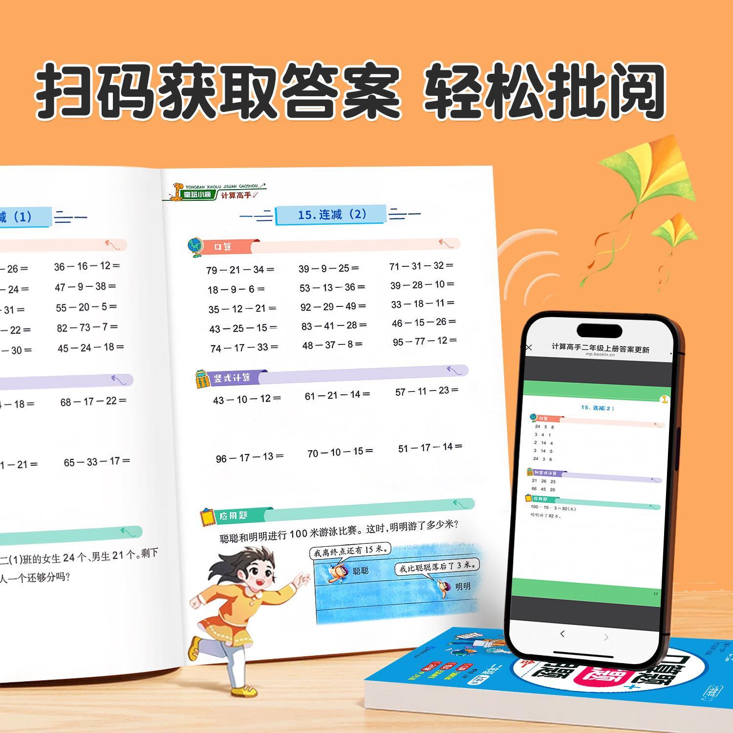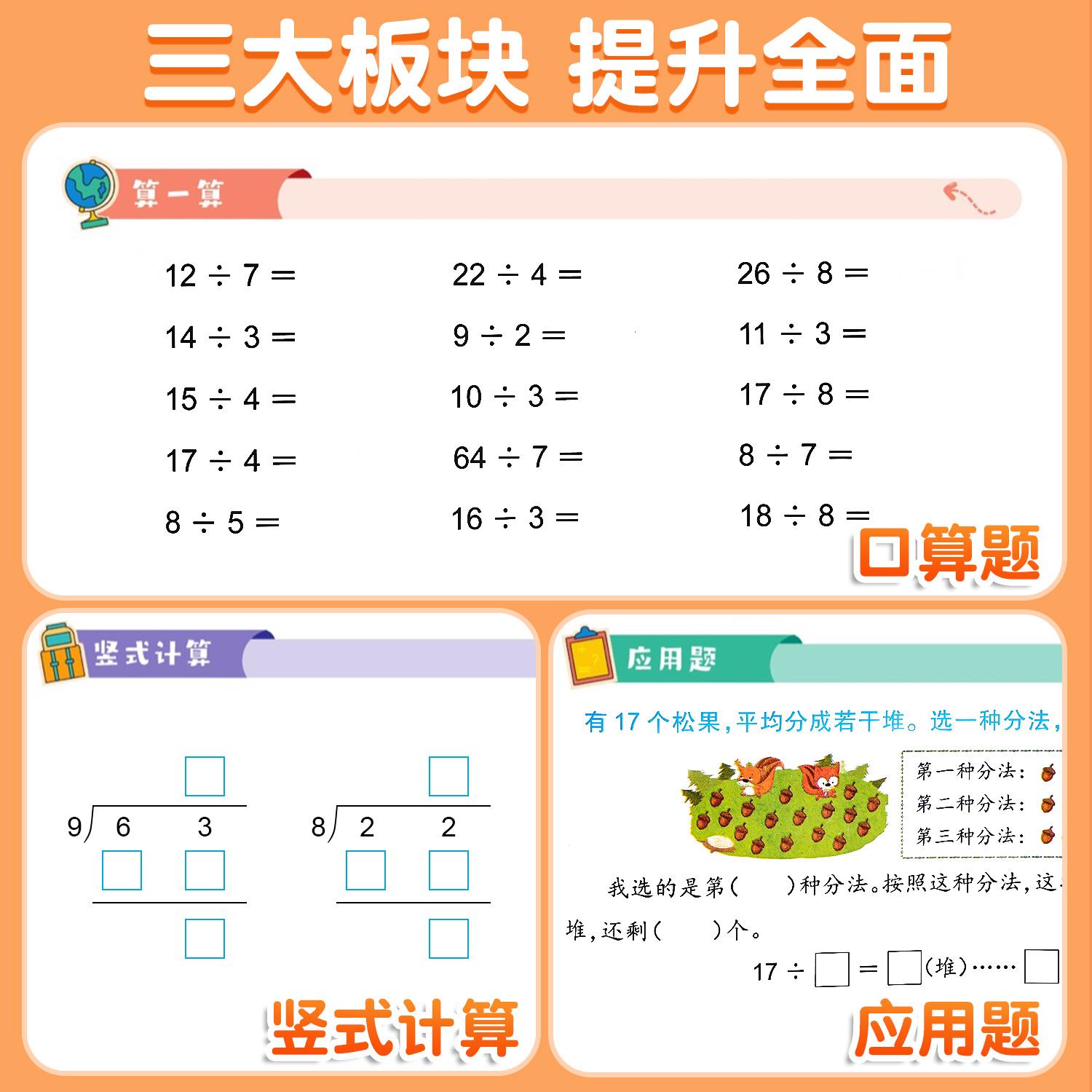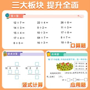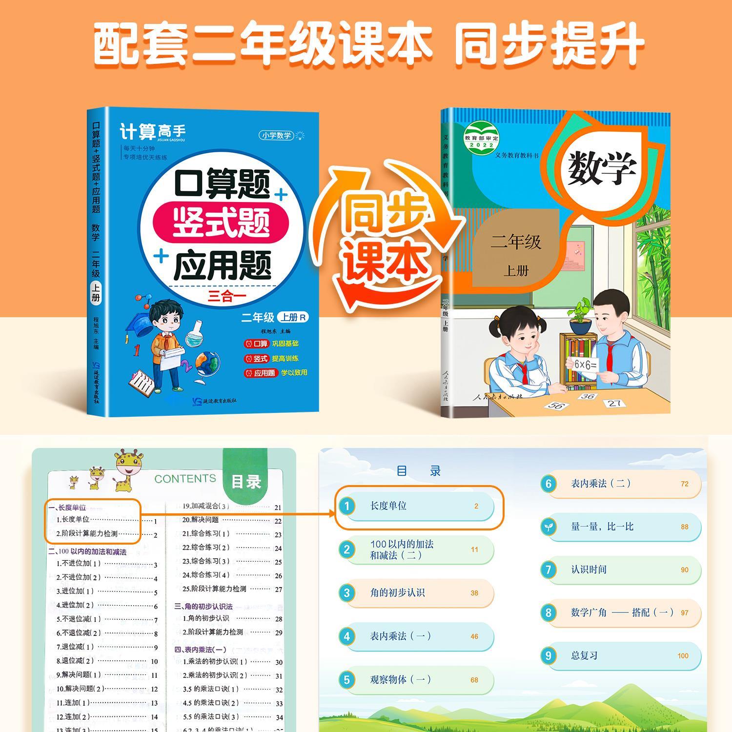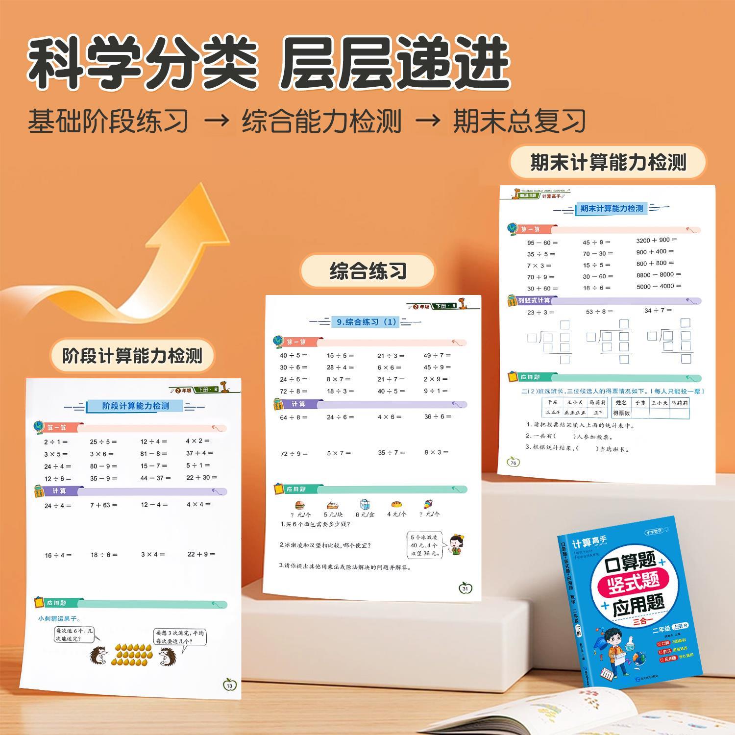 练习本解题技 数学应用题计算题强化专项训练同步练习题册口算题卡竖式 2025新款 二年级上下册口算天天练人教版